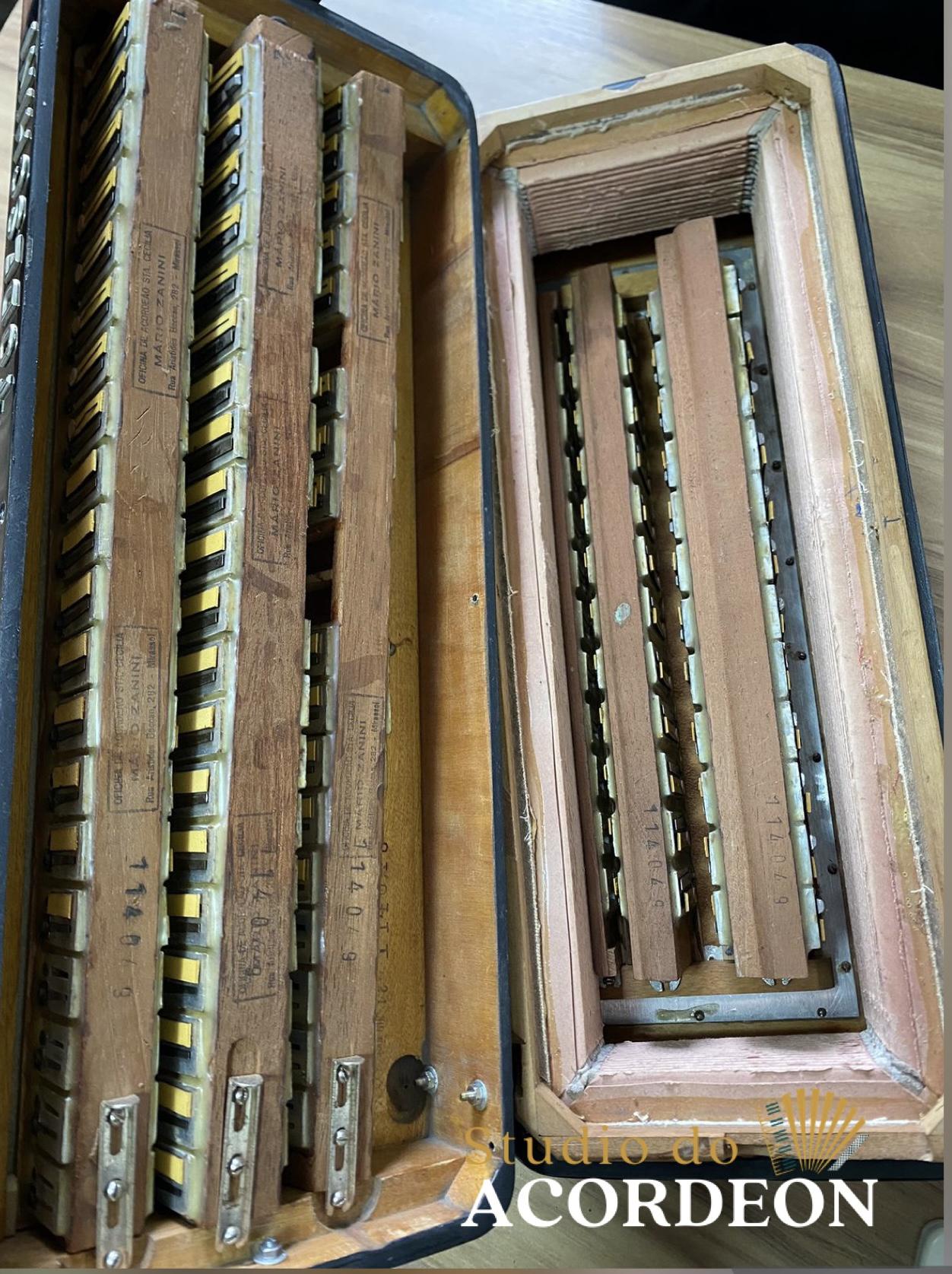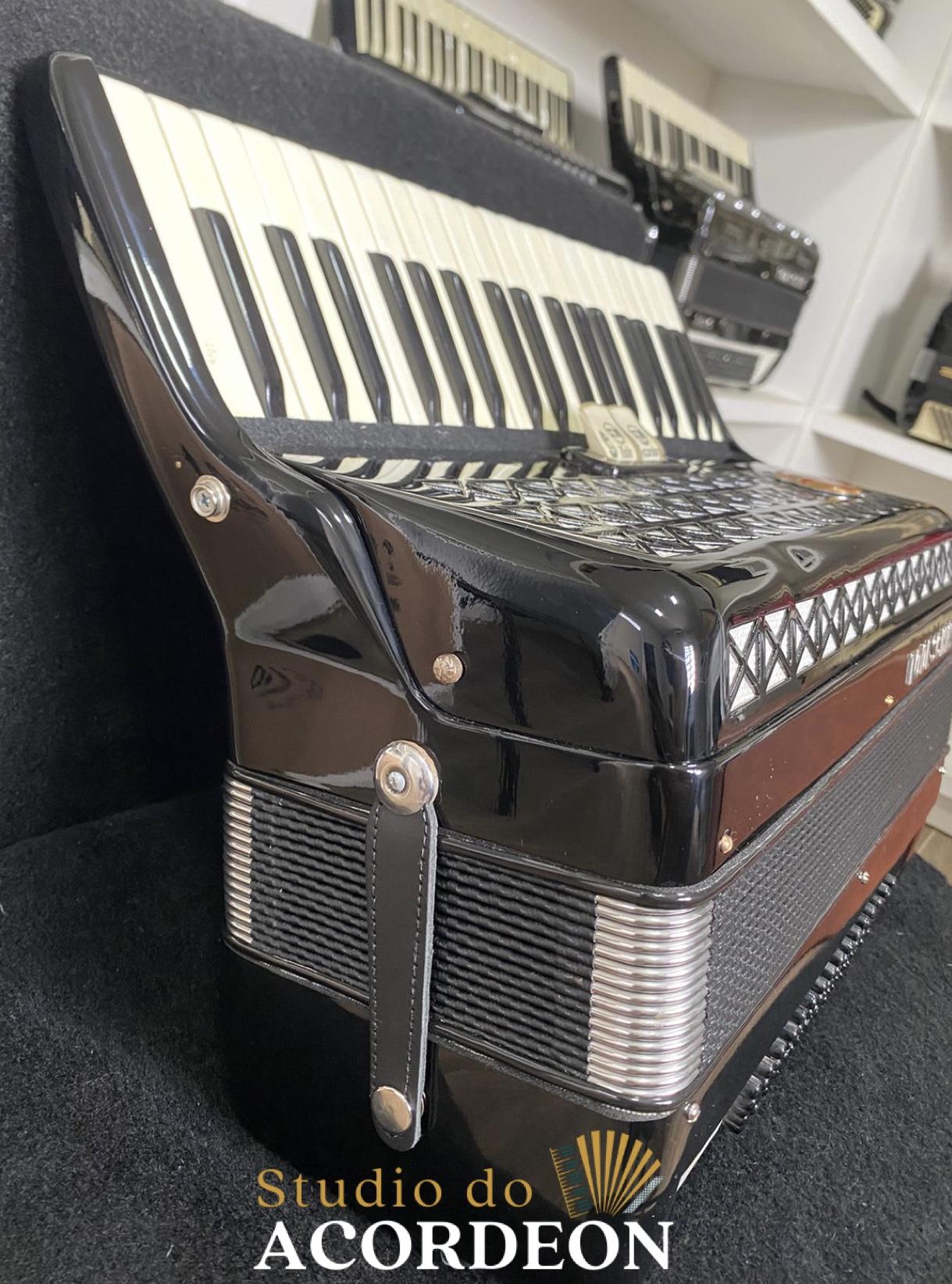 2 registros; Astes redondas; 3/5 de voz; Teclado original marfim; 80 baixos; 7.800kg aproximado; Timbre forte espetacular; Toda em celuloide em estado de nova, com fole e afinação 💯%; Alças e bag novo; Enviamos para todo Brasil; Parcelamento em até 12x com Acréscimo da operadora;