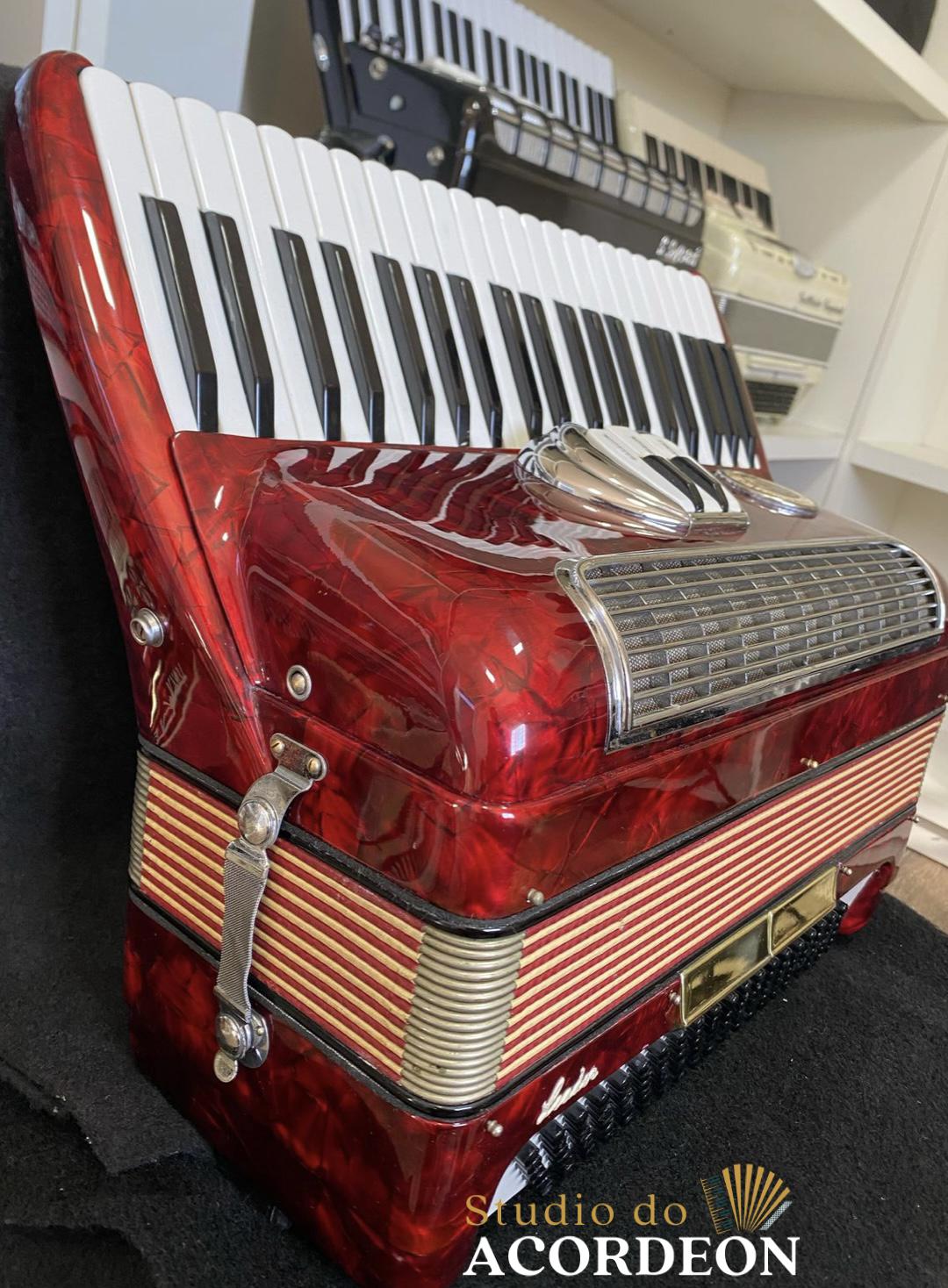 Fabricação Italiana; 3/2 Registros; 2/4 de voz; Lacrada, nunca furada com eletrificação; Peso aproximado 8.700kg; Fole, afinação e musicamento 💯%, sendo ambos totalmente originais; Teclado tamanho Médio com 45Cm; 120 baixos; Bag e Correias novas; Parcelamos em até 12 X nos cartões de crédito 💳; Frete grátis para todo Brasil para pagamento à vista ;