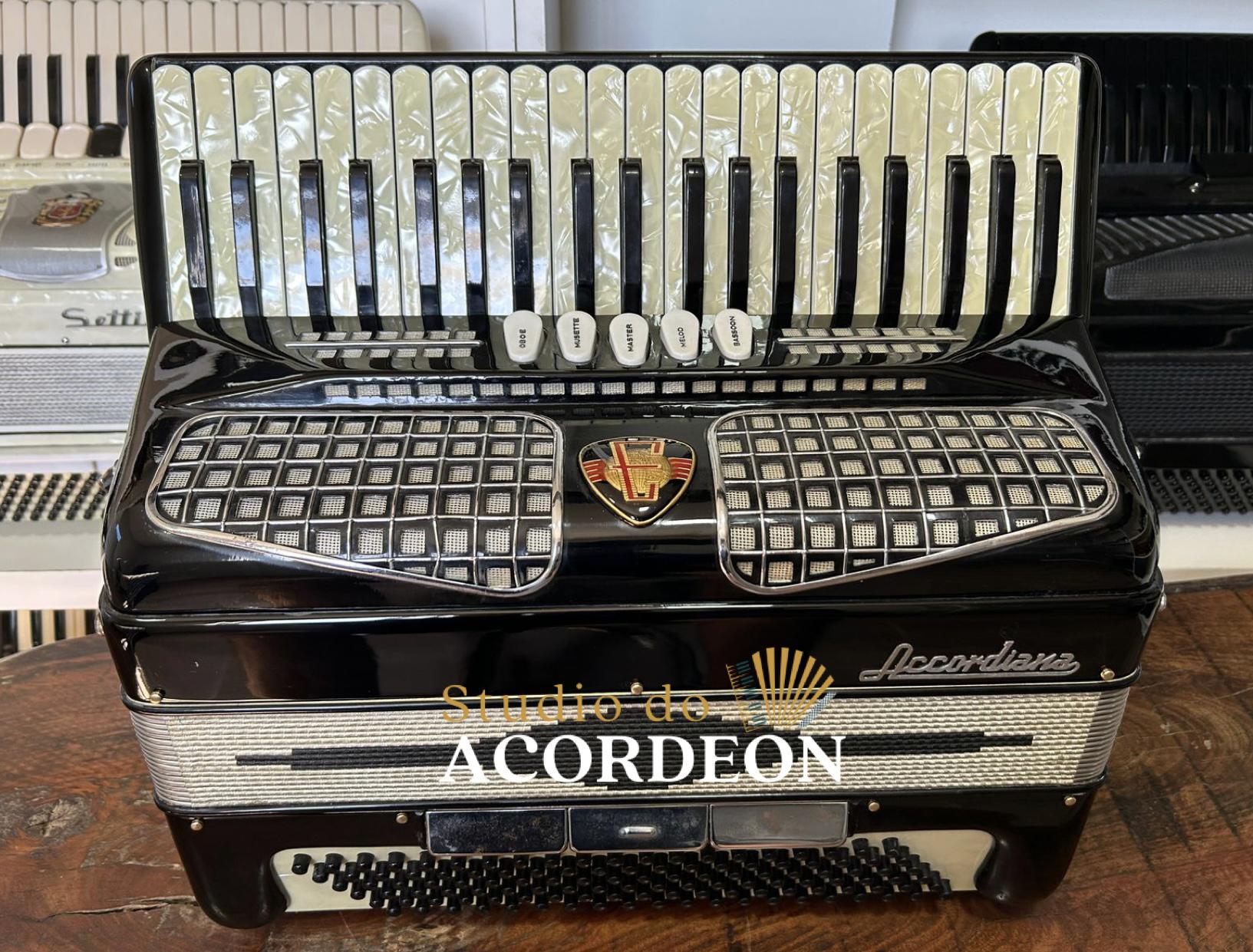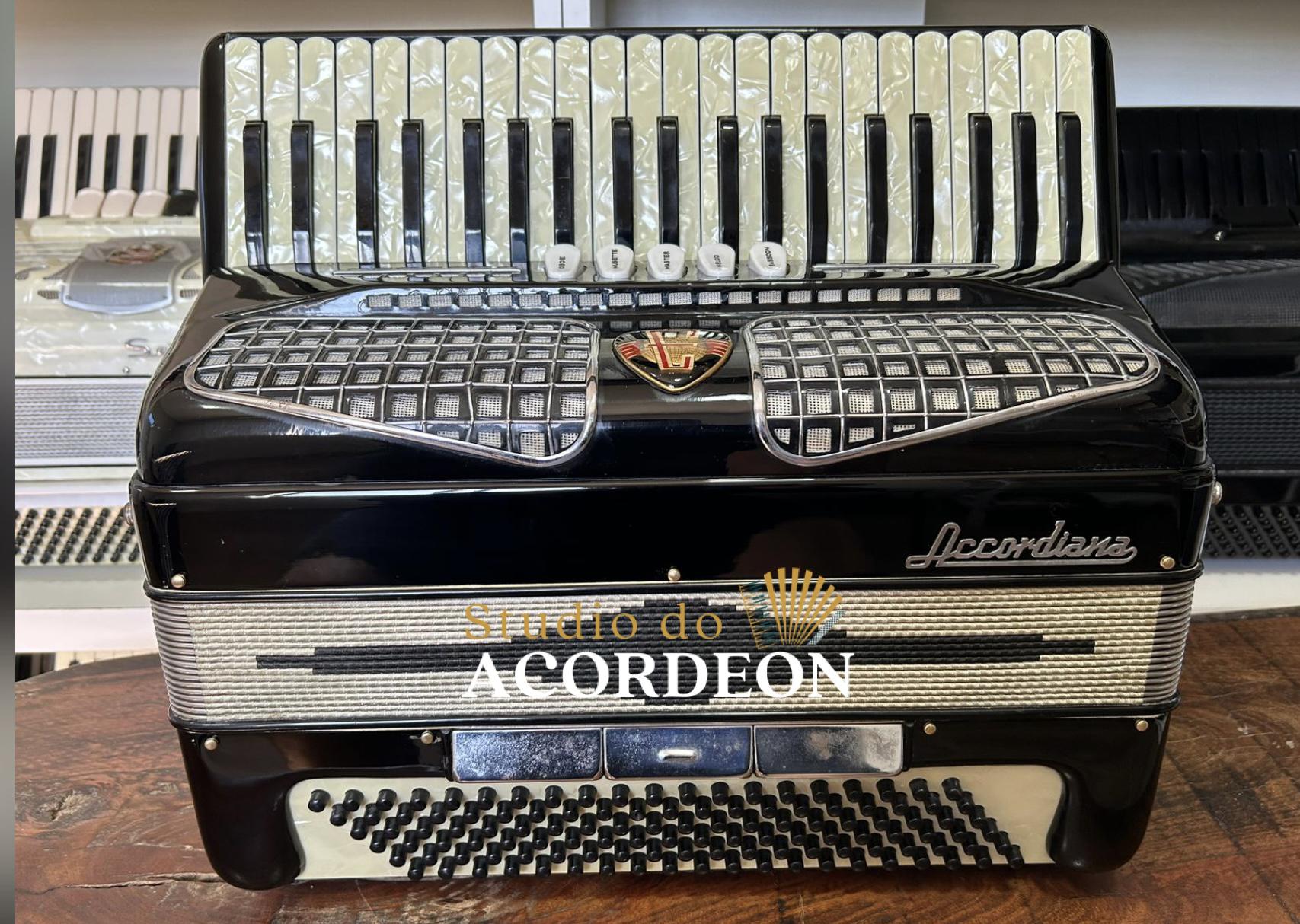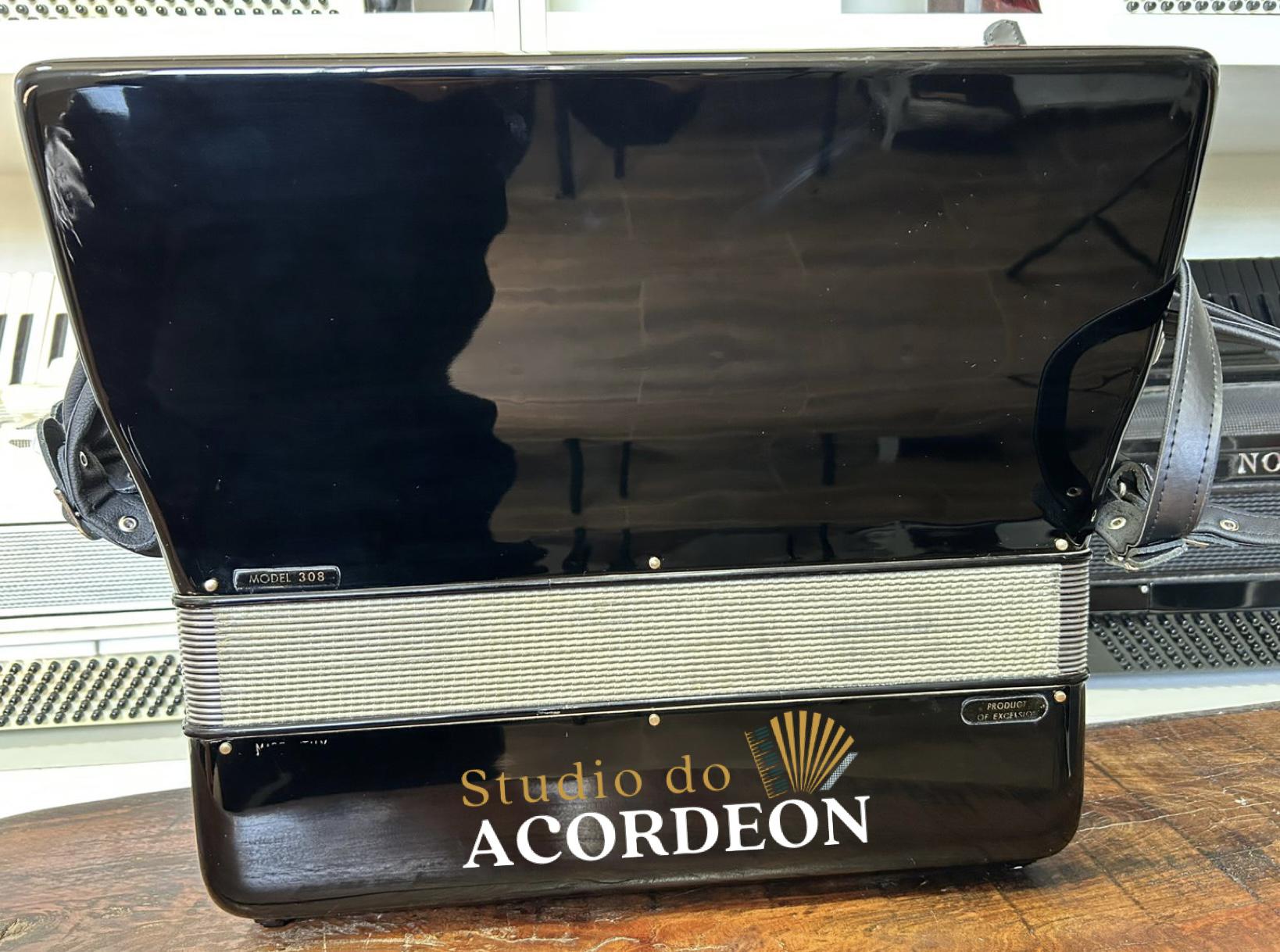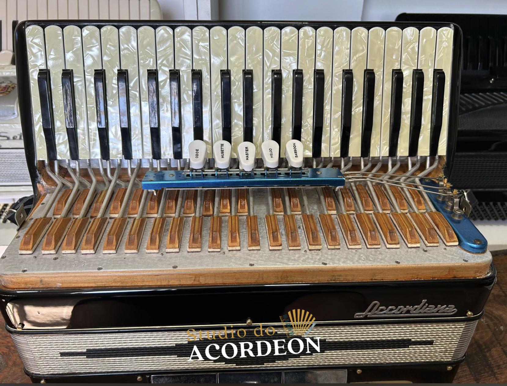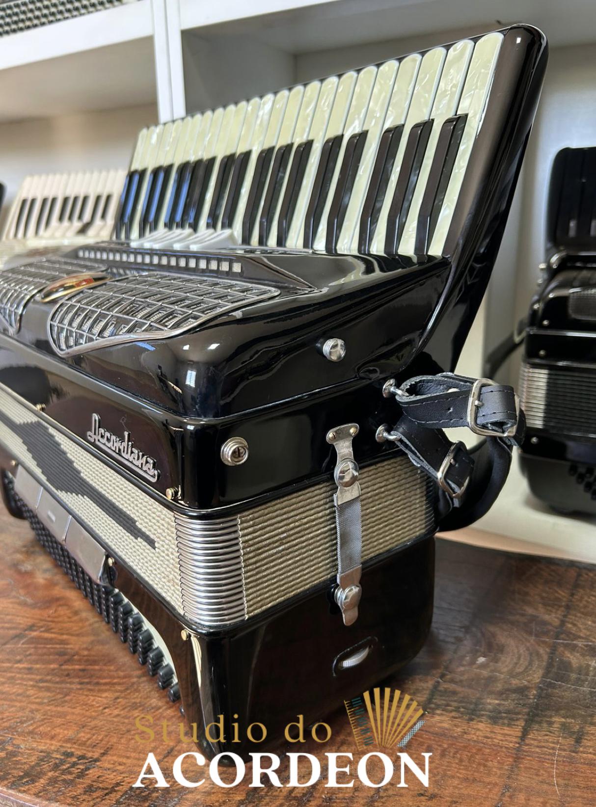 Terça de voz; Teclado madrepérola com 44,5cm; 5/3 registros; 120 baixos; Pressão de fole 💯 %; 8.600 kg; Alças de ombro e bag novo; Enviamos para todo Brasil🇧🇷; Parcelamento em até 12x nos cartões de crédito 💳