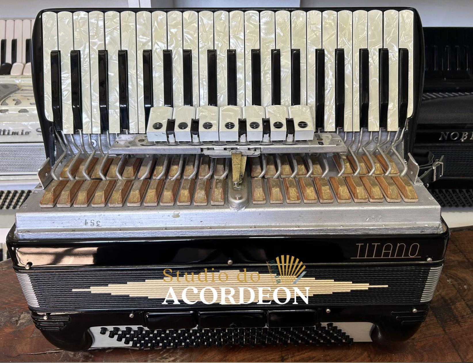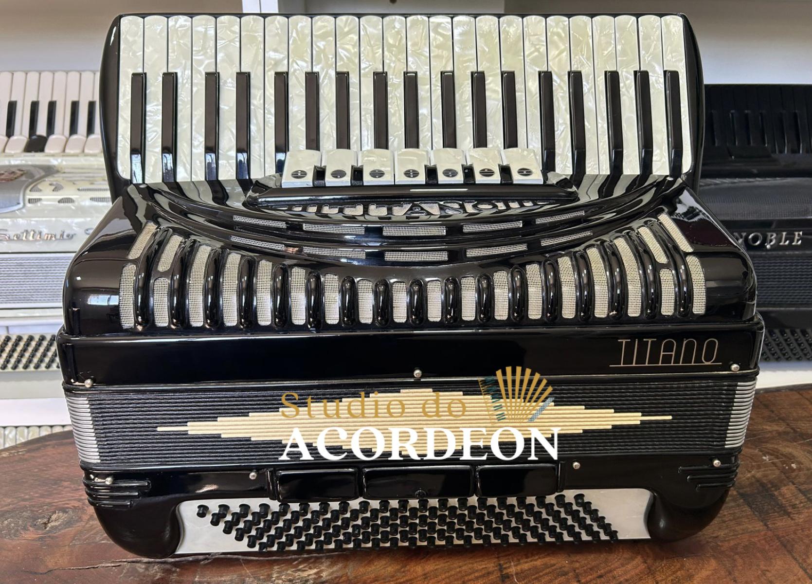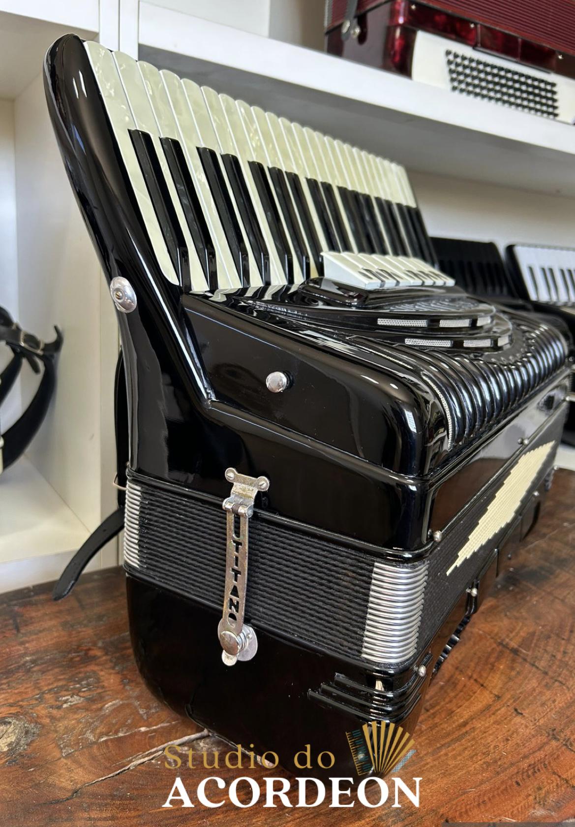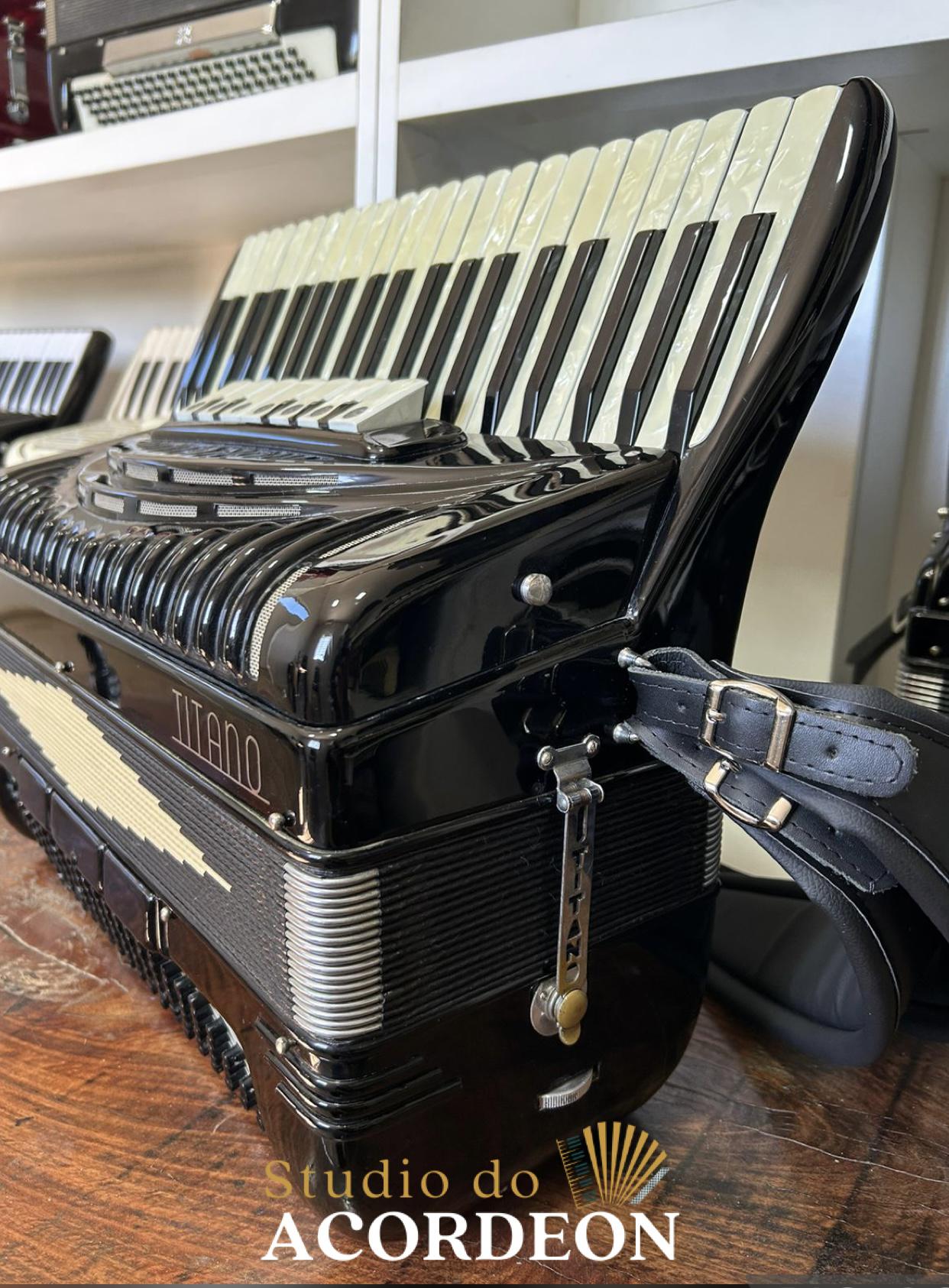 3/5 de voz; Teclado madrepérola com 47,5cm; 7/3registros; 120 baixos; Nunca furada com eletrificações; Instrumento chama atenção por sua originalidade, fechos de fole correia dos baixos e musicamento tudo ainda original; Protetor de fole rígido original; Pressão de fole e afinação💯 %; Fabricação Italiana; 10.6000kg; Alças de ombro e bag novo; Enviamos para todo Brasil🇧🇷; Parcelamento em até 12x nos cartões de crédito 💳