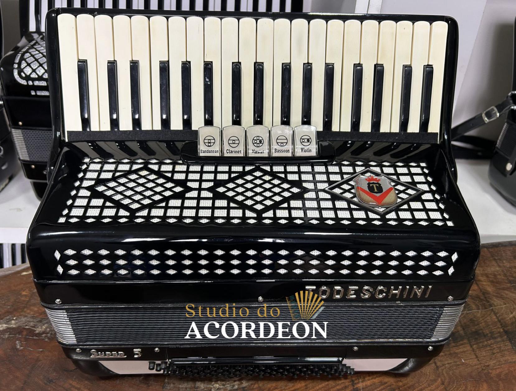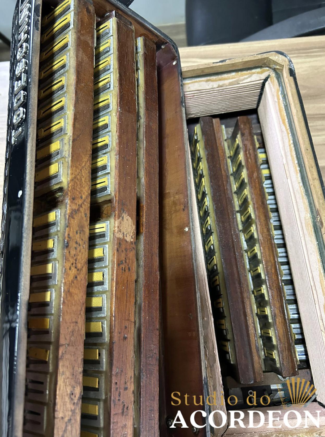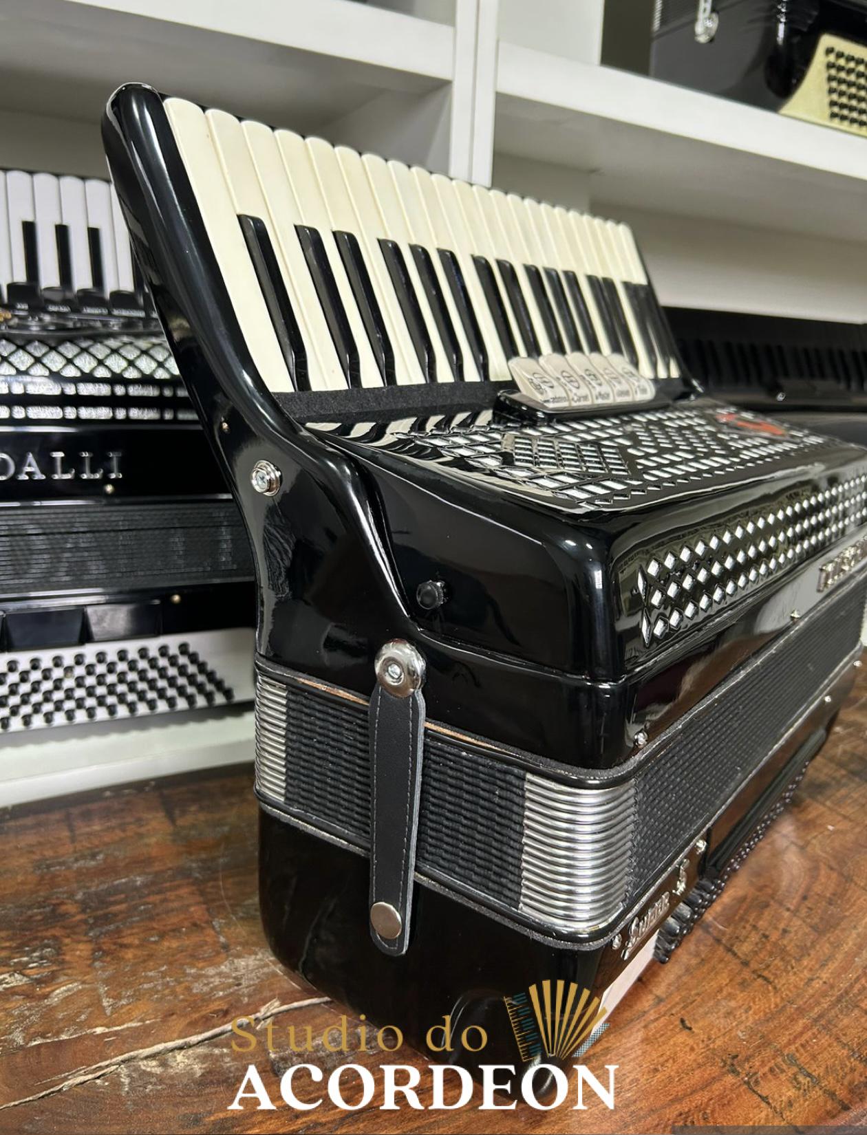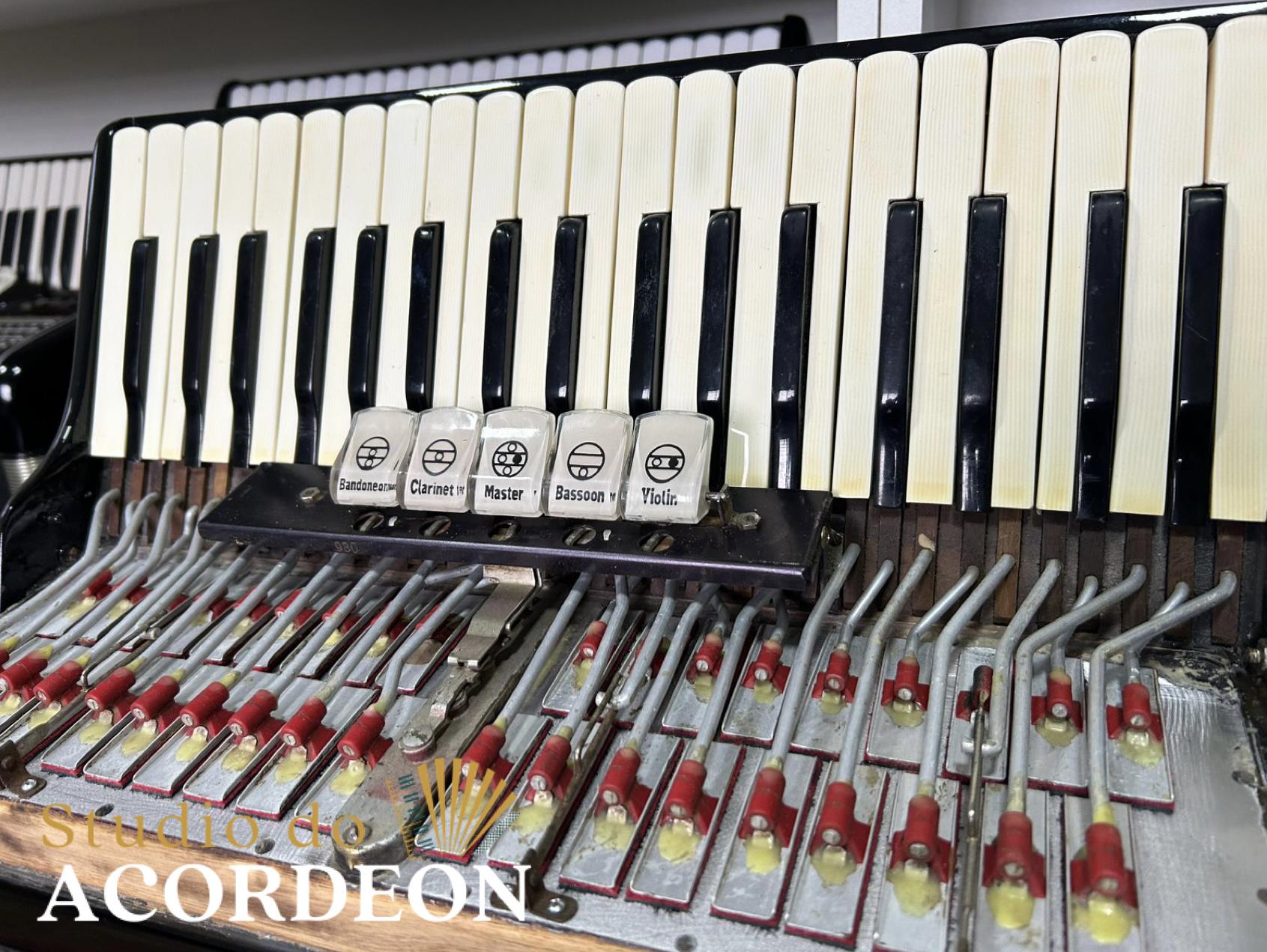 7/2 registros; 3/5 de voz; 80 baixos; Peso aproximado 8,100 kg; Selo verde e Astes redondas; Timbre forte; Alças e bag novos; Enviamos para todo Brasil; Parcelamento em até 12x com Acréscimo da operadora;