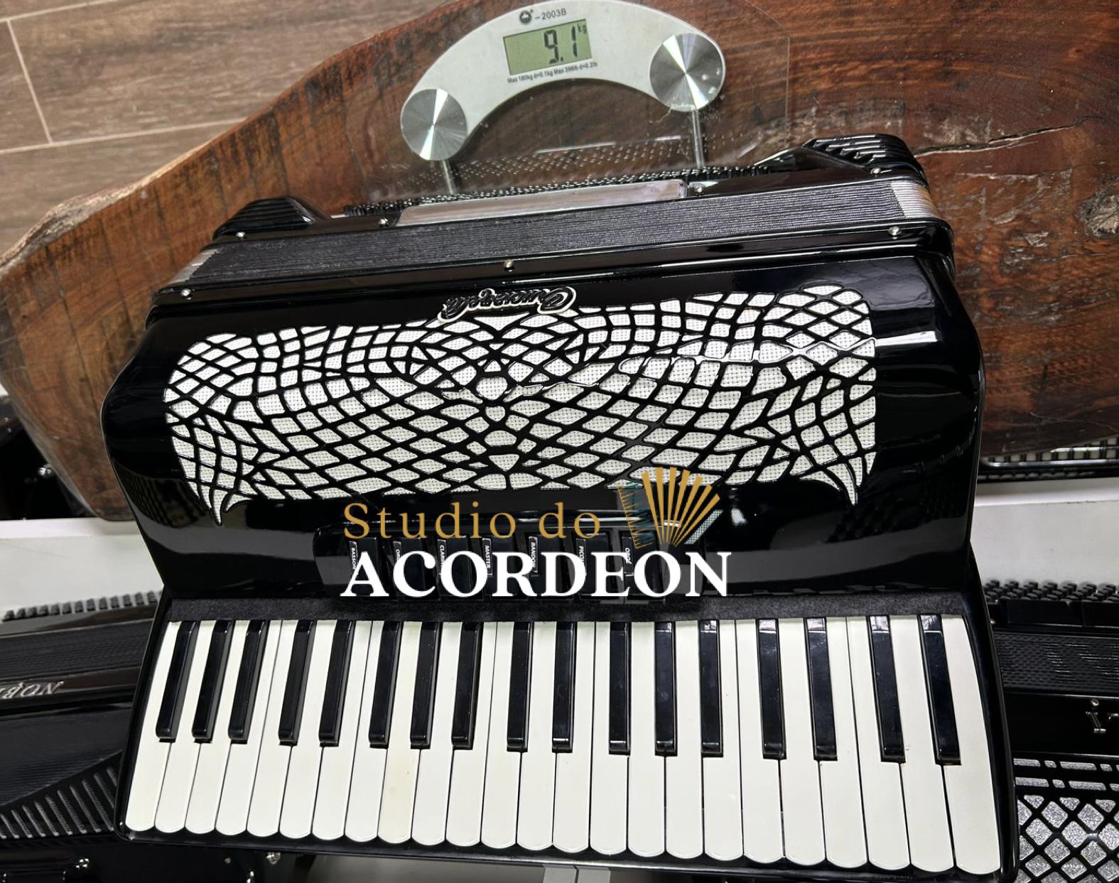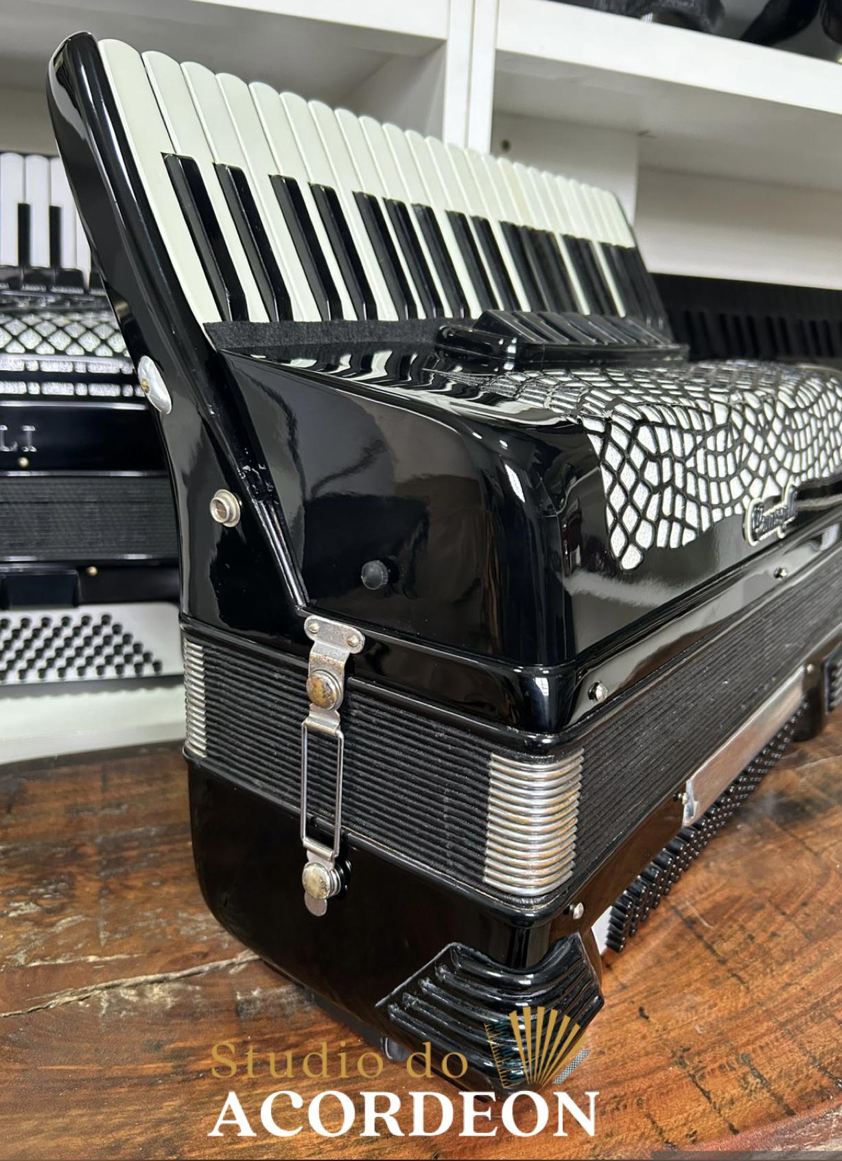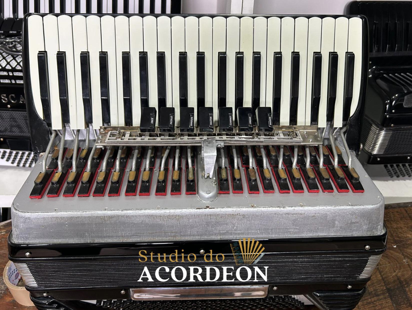 Terça de voz oitavada de fábrica; Fabricação Italiana; Fole e afinação 💯%; Teclado com 45cm; 7/2 Registros; 120 Baixos; Correias novas e bag novo; Peso 9.100kg; Frete grátis para todo Brasil para pagamento à vista; Parcelamento em até 12x nos cartões de crédito 💳