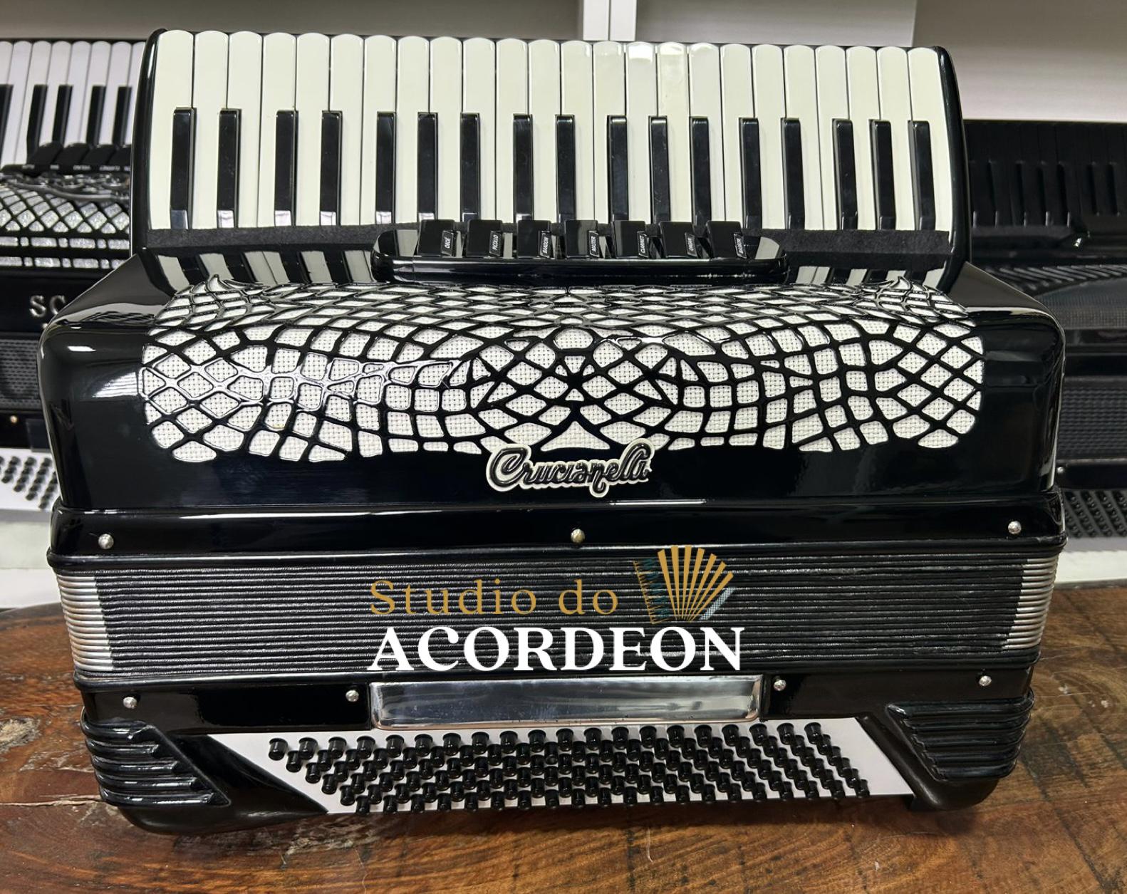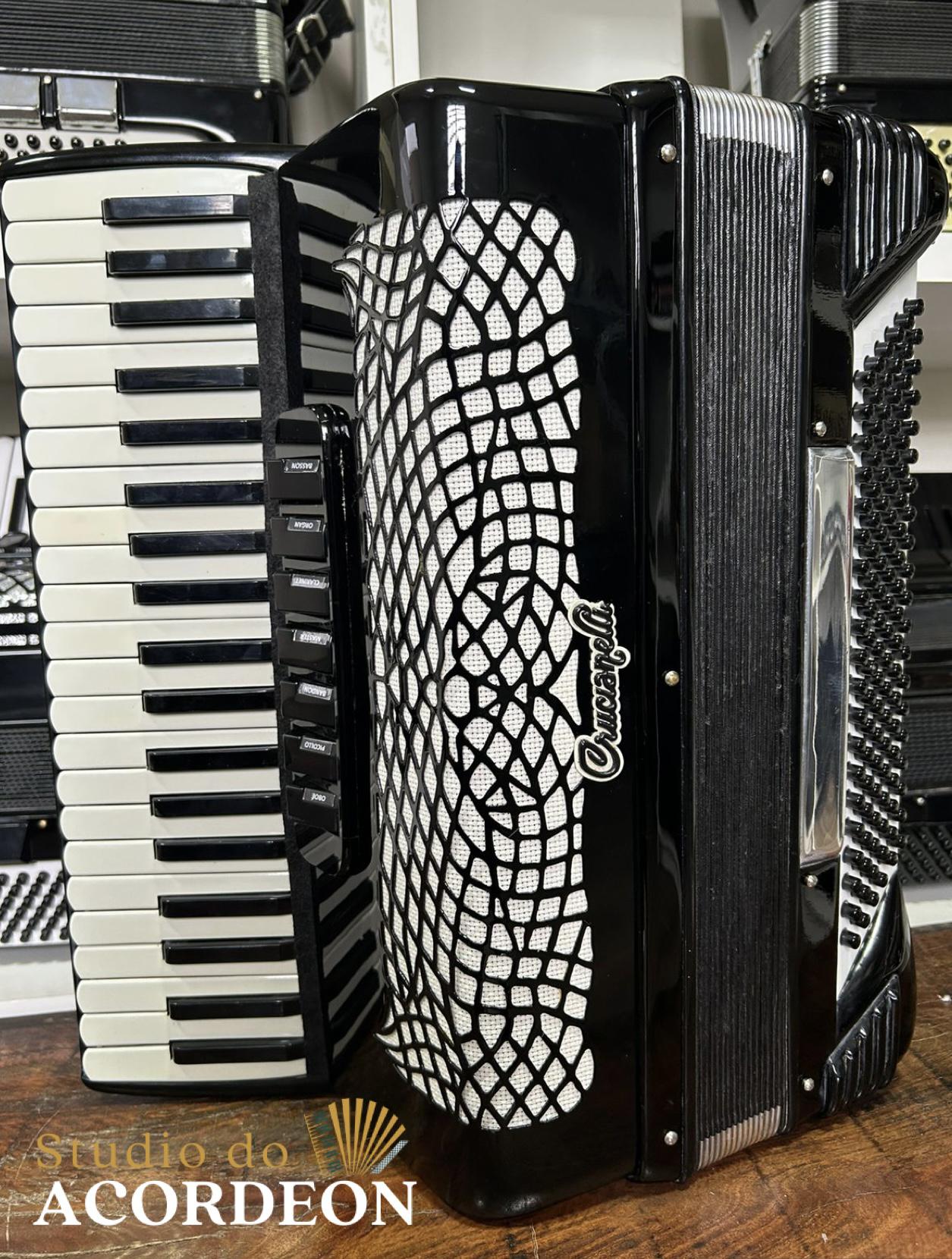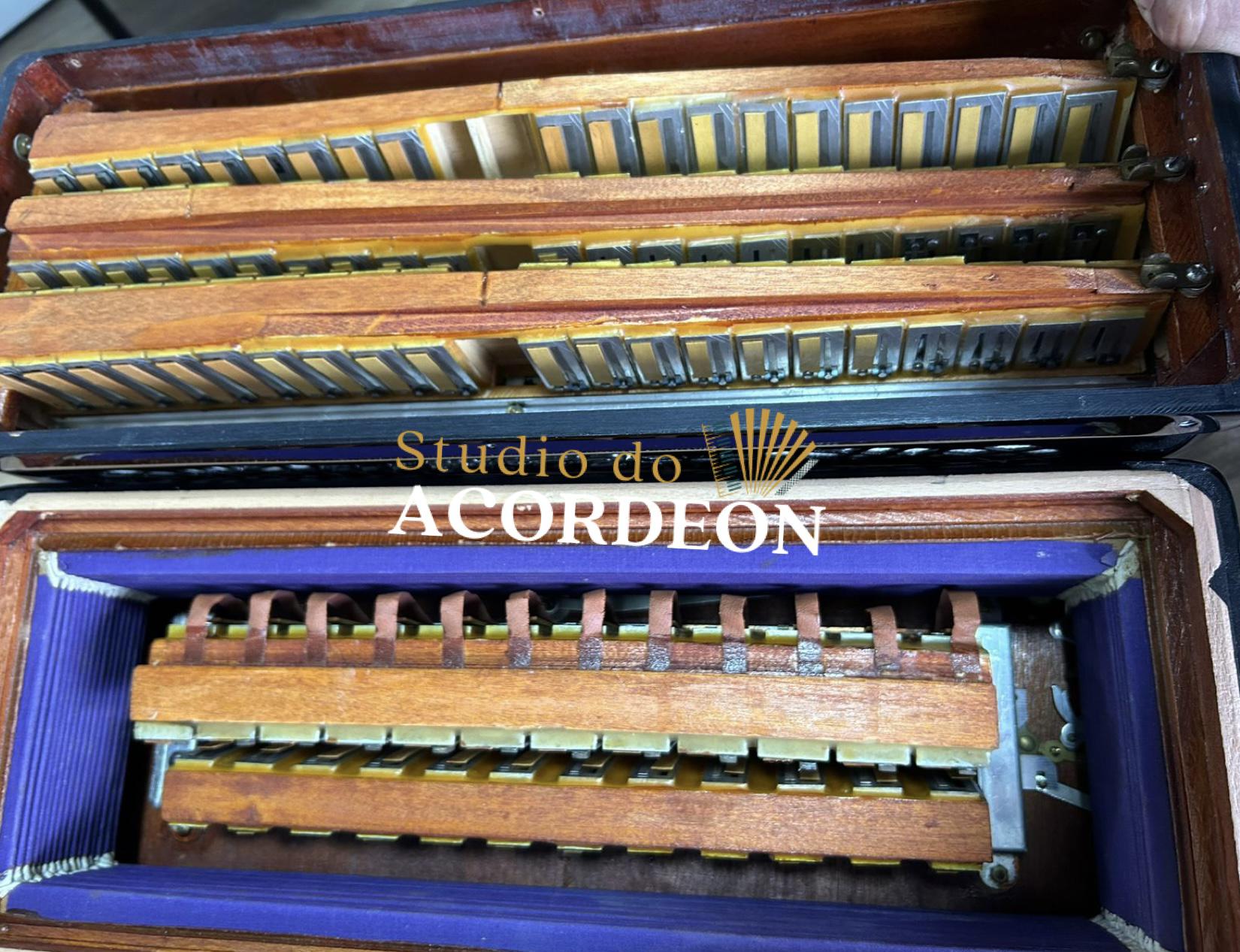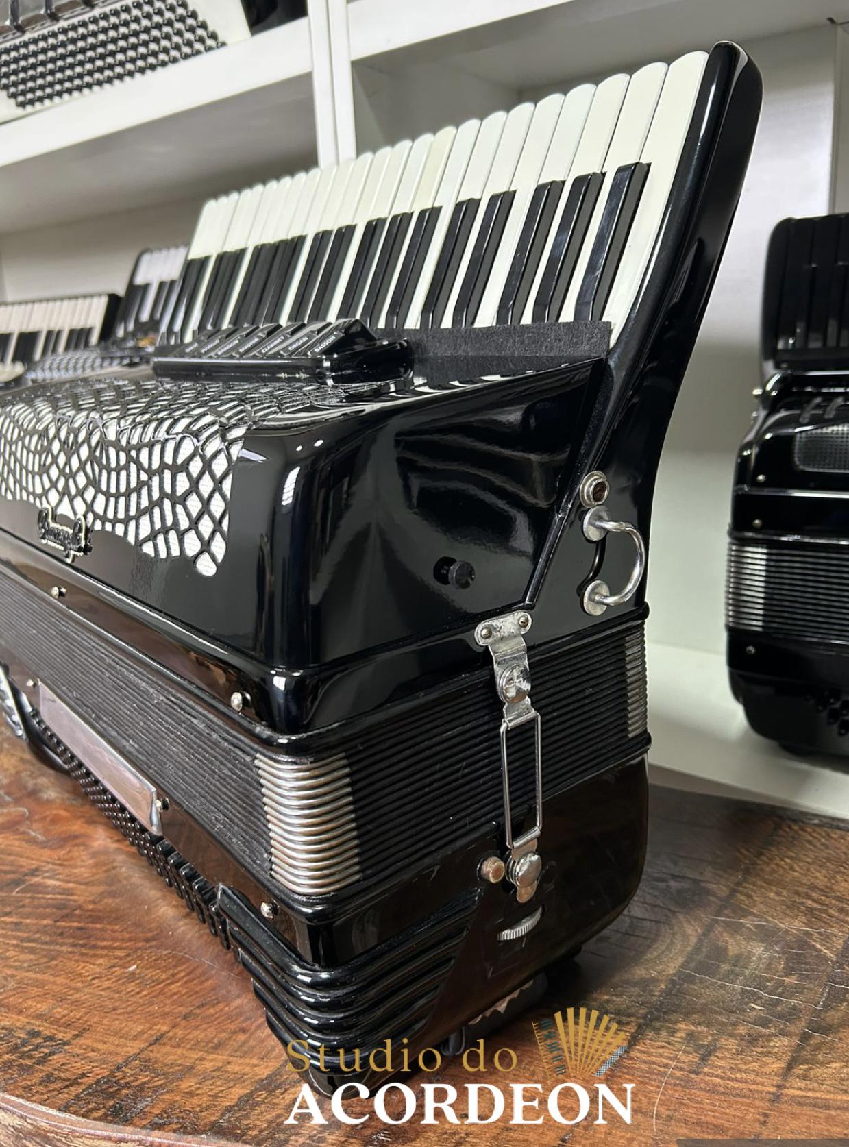 Terça de voz oitavada de fábrica; Fabricação Italiana; Fole e afinação 💯%; Teclado com 45cm; 7/2 Registros; 120 Baixos; Correias novas e bag novo; Peso 9.100kg; Frete grátis para todo Brasil para pagamento à vista; Parcelamento em até 12x nos cartões de crédito 💳