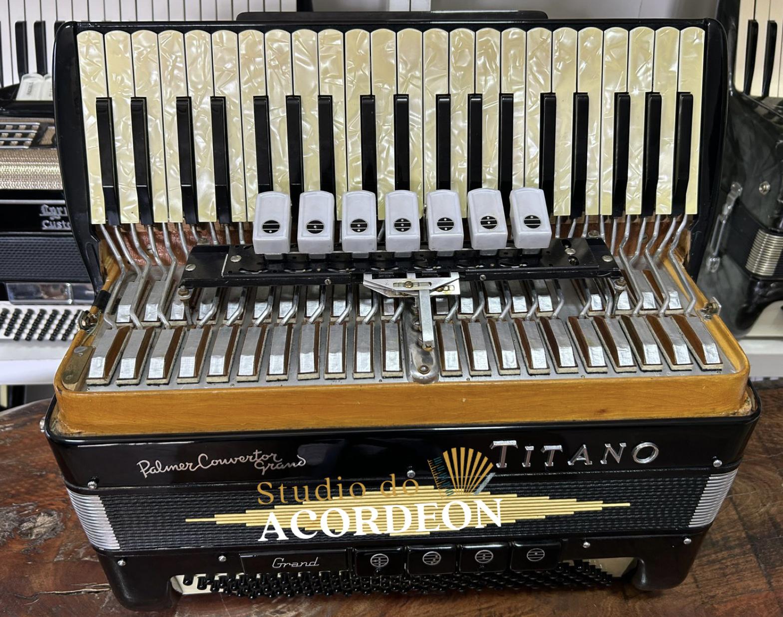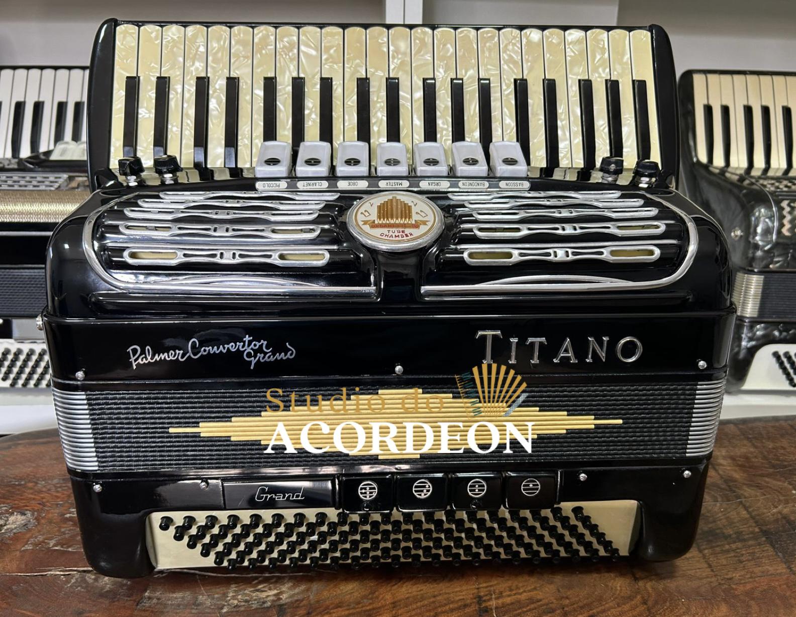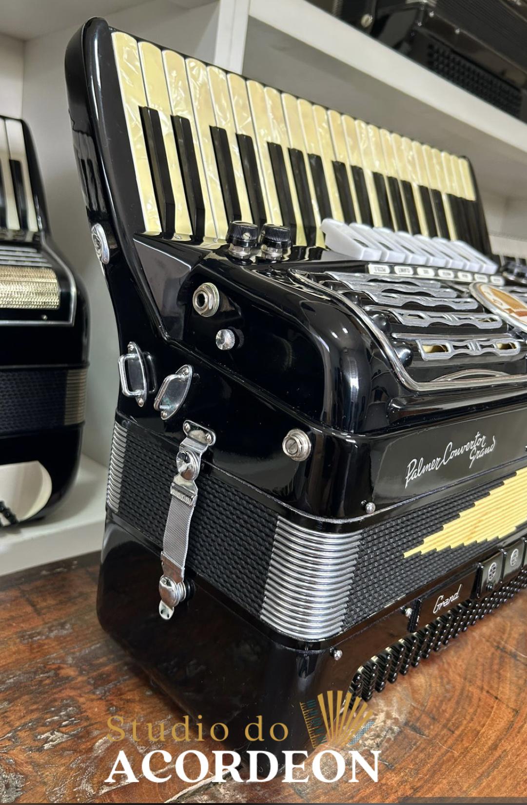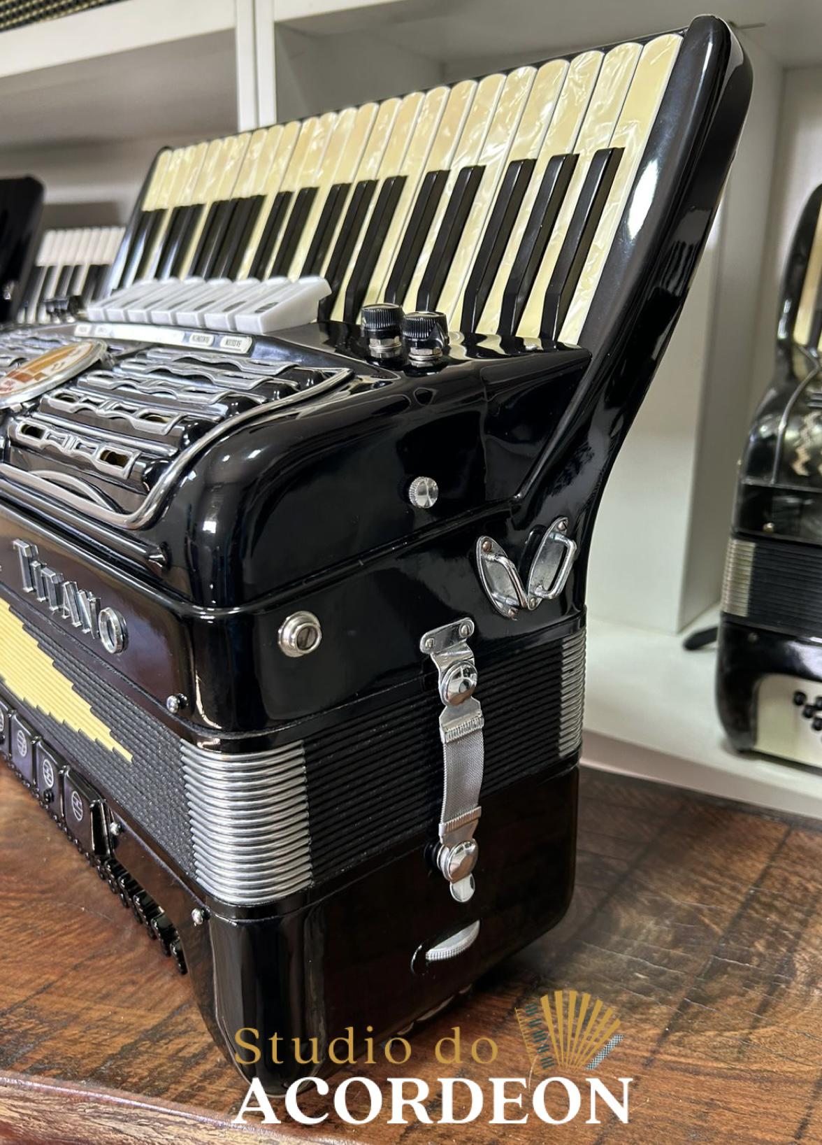 7/4 registros; Terça de voz oitavada de fábrica; Desarme Lateral; Teclado em madrepérola com 43cm; 120 baixos; 9.500kg aproximado; Timbre grave e aveludado; Fole e afinação 💯%; Alças e bag novo; Raro estado de conservação e originalidade; Enviamos para todo Brasil; Parcelamento em até 12x com Acréscimo da operadora;