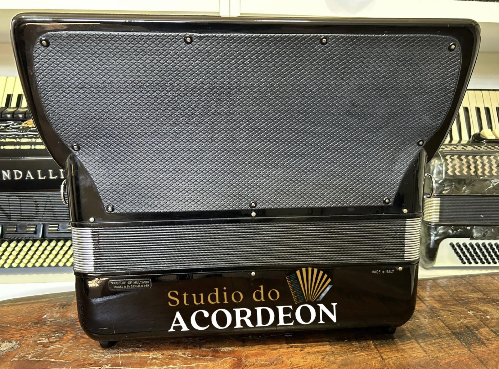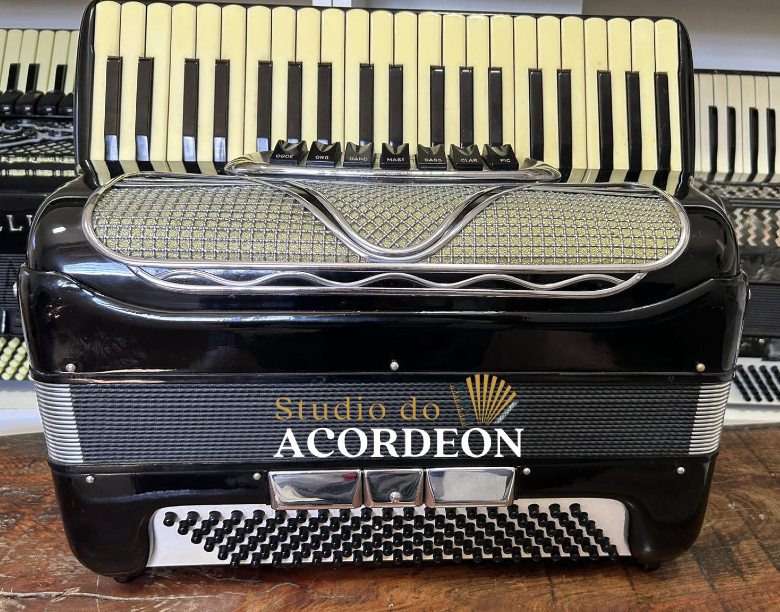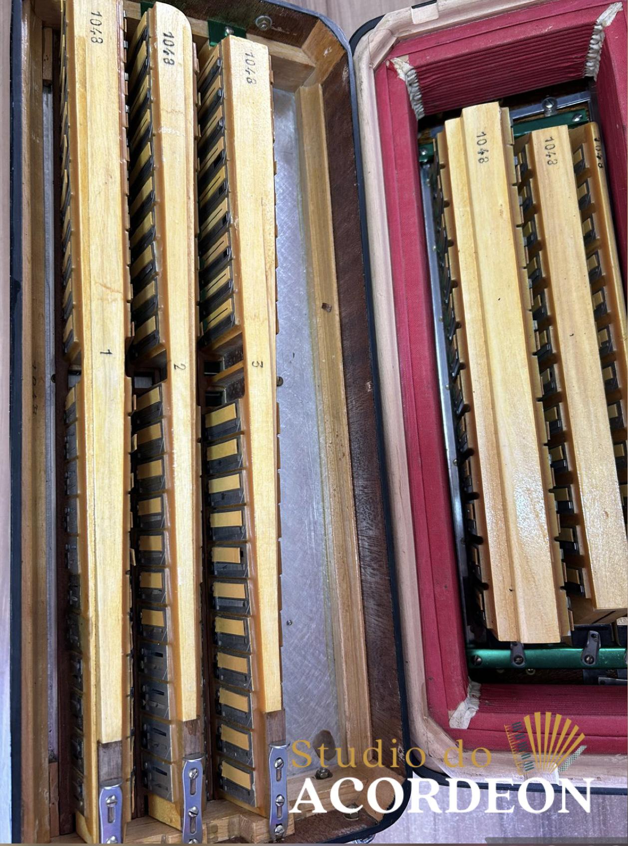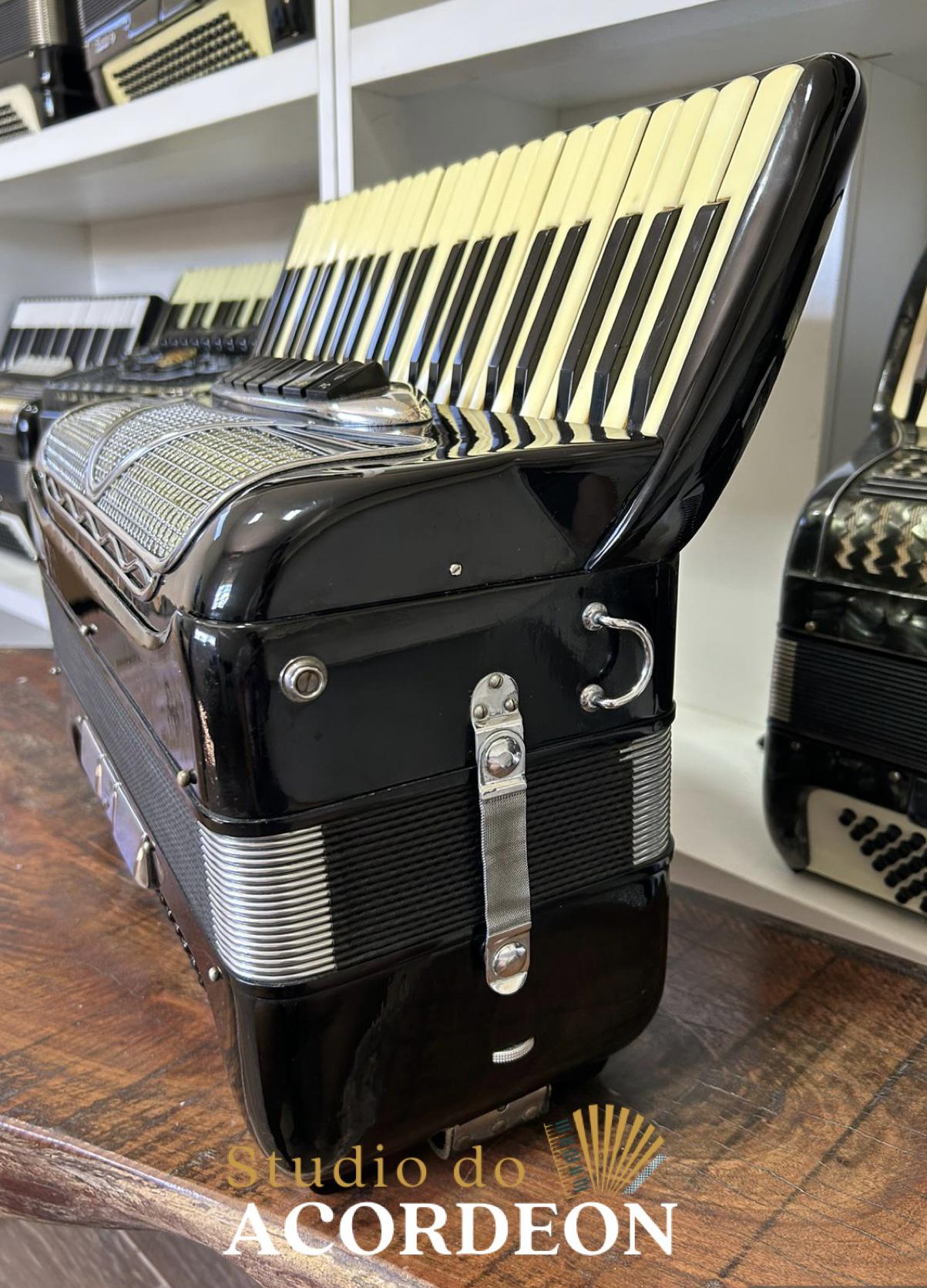 7/3 Registros; 3/5 de voz oitavada de fábrica; Nunca furada com eletrificações; Teclado com 46cm; 120 baixos; 9.900kg aproximado; Timbre bem harmônico característico das italianas; Fole e afinação 💯%; Alças e bag novo; Enviamos para todo Brasil; Parcelamento em até 12x com Acréscimo da operadora;