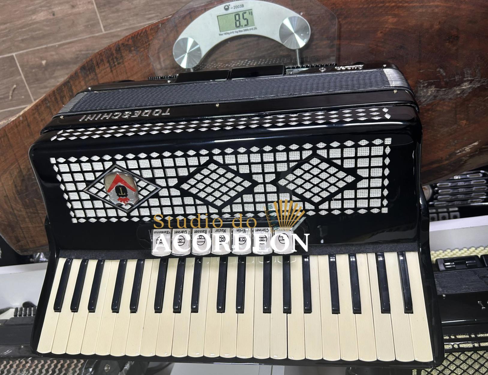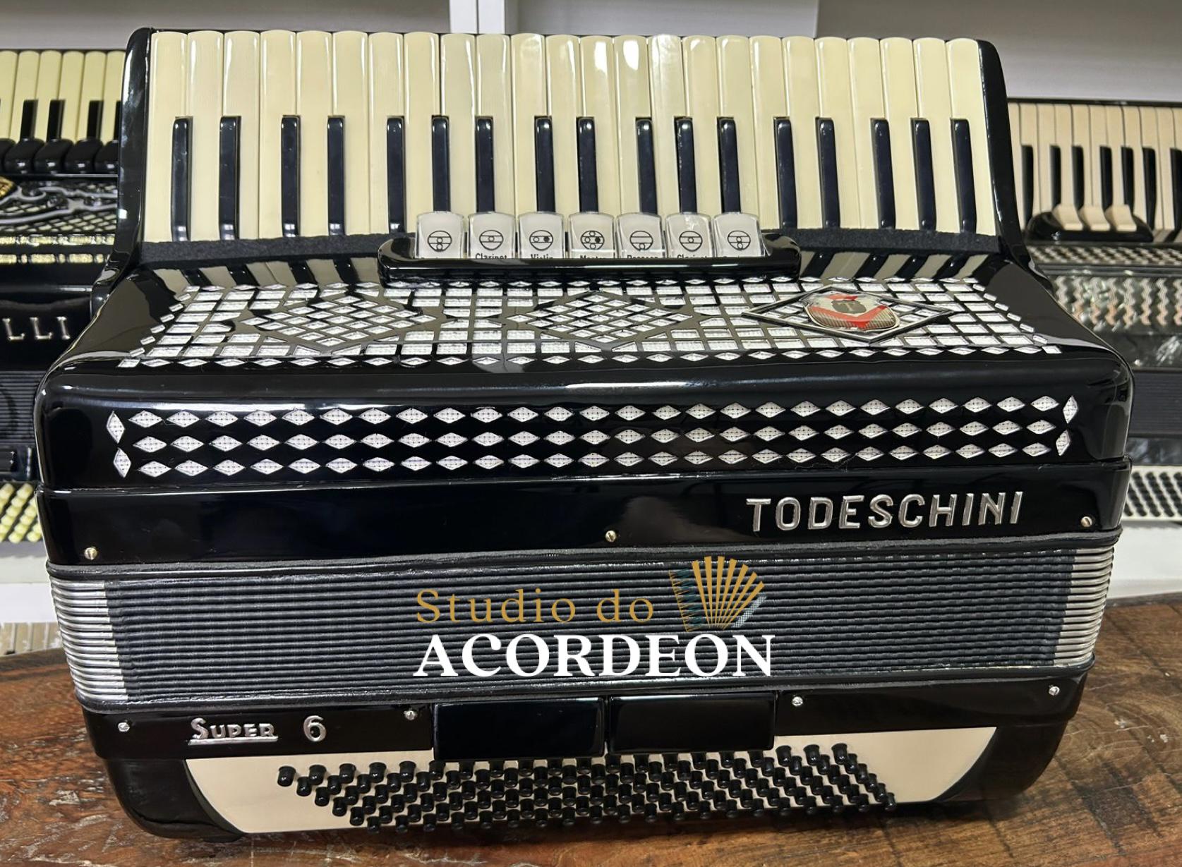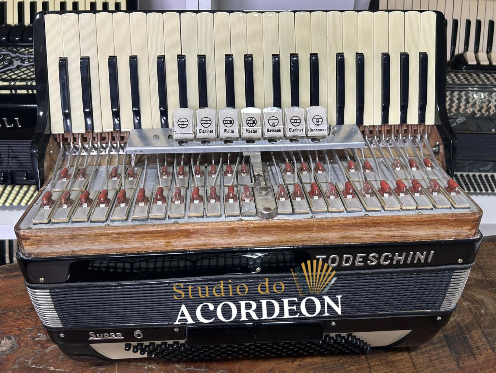 3/5 de voz; Afinação com Violin original, Musicamento afinado e limpo; Teclado 47cm; 7/2 registros; 120 baixos; Estética em estado de nova; Pressão de fole 💯 %; 9kg aproximadamente; Alças de ombro e bag novo; Enviamos para todo Brasil🇧🇷