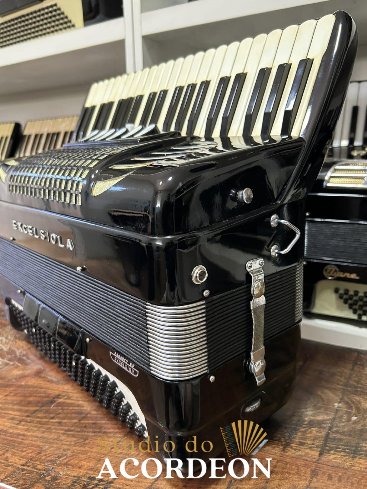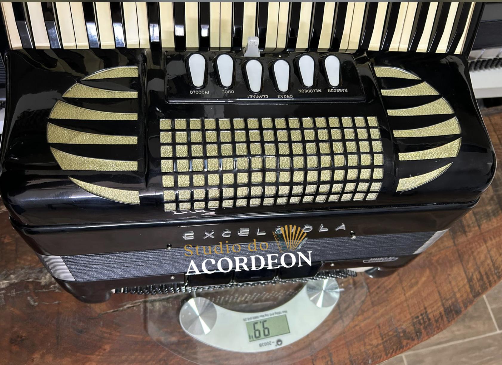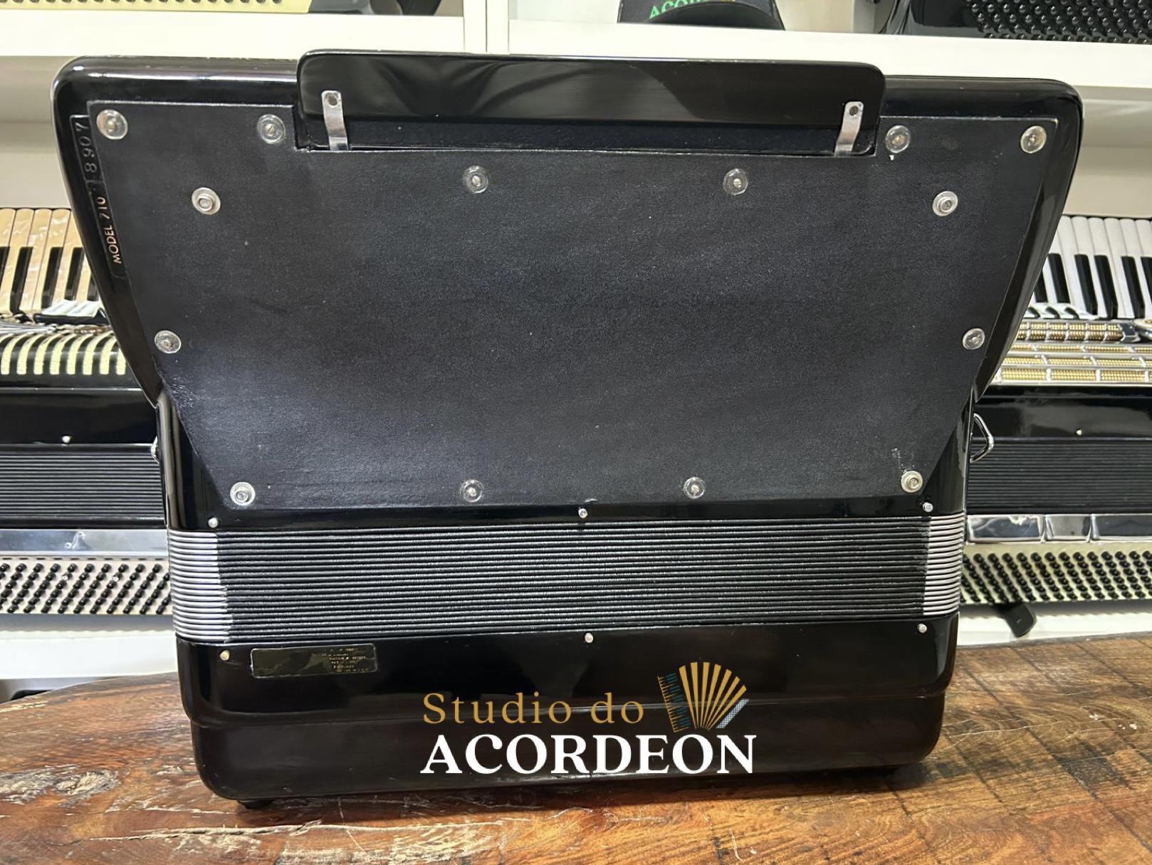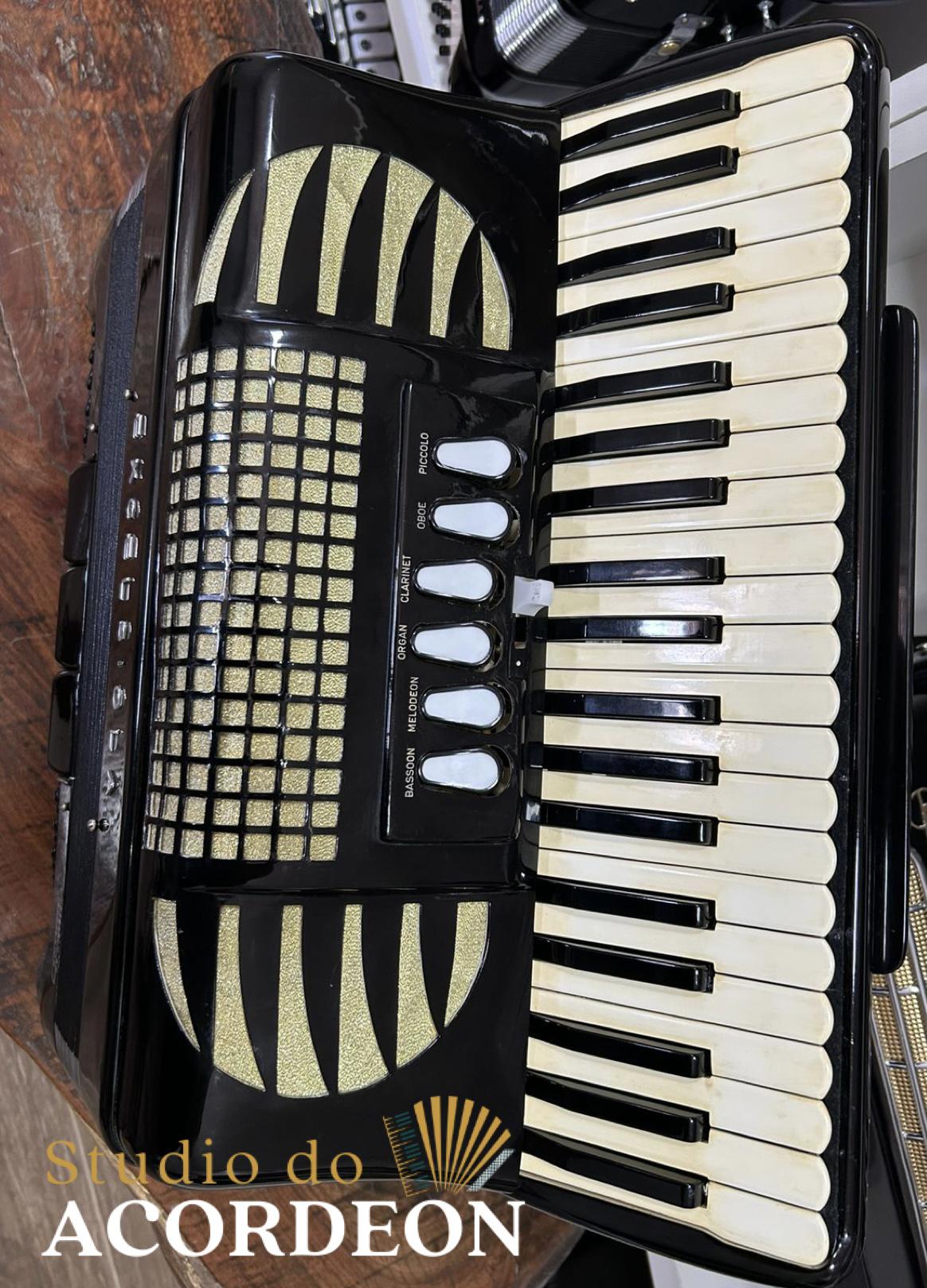 3/5 oitavada de fábrica; Desarme Lateral; Simulador de Cassoto; Fabricação Italiana; Teclado médio com 44.5cm; 7/3 Registros; Lacrada, nunca furada com eletrificações; 120 baixos; Pressão de fole e afinação 💯 %; Peso 9.900Kg; Instrumento destaca-se pela fácil resposta sonora de seu musicamento; Correias novas e bag novo; Frete grátis para todo Brasil para pagamento à vista; Parcelamento em até 12x nos cartões de crédito 💳
