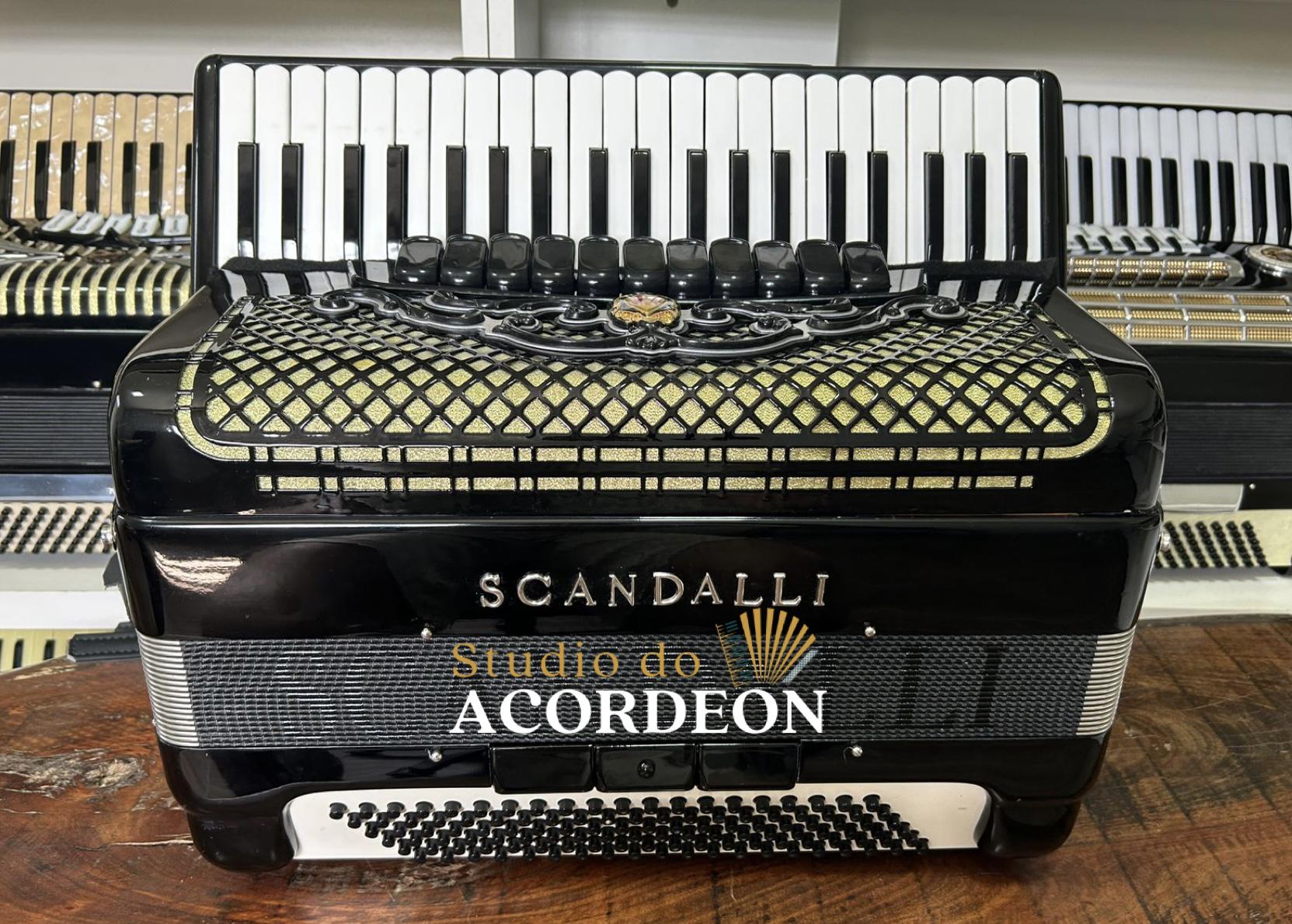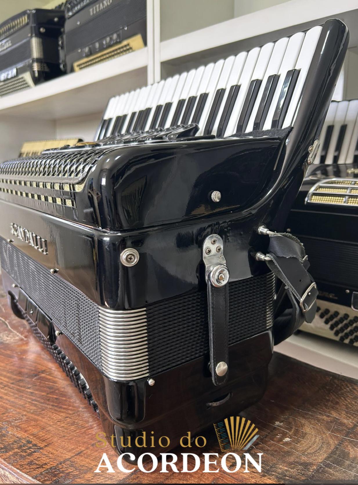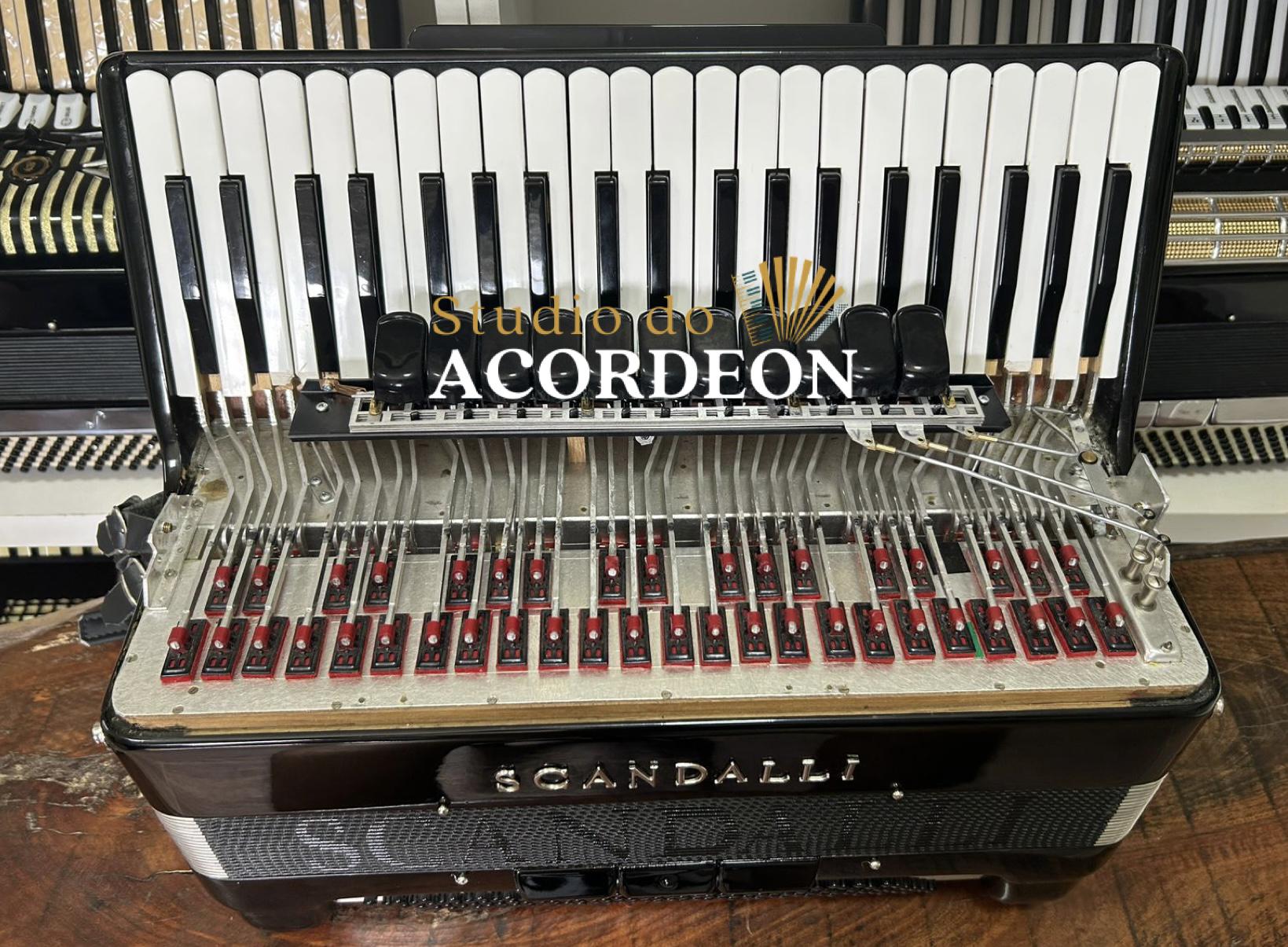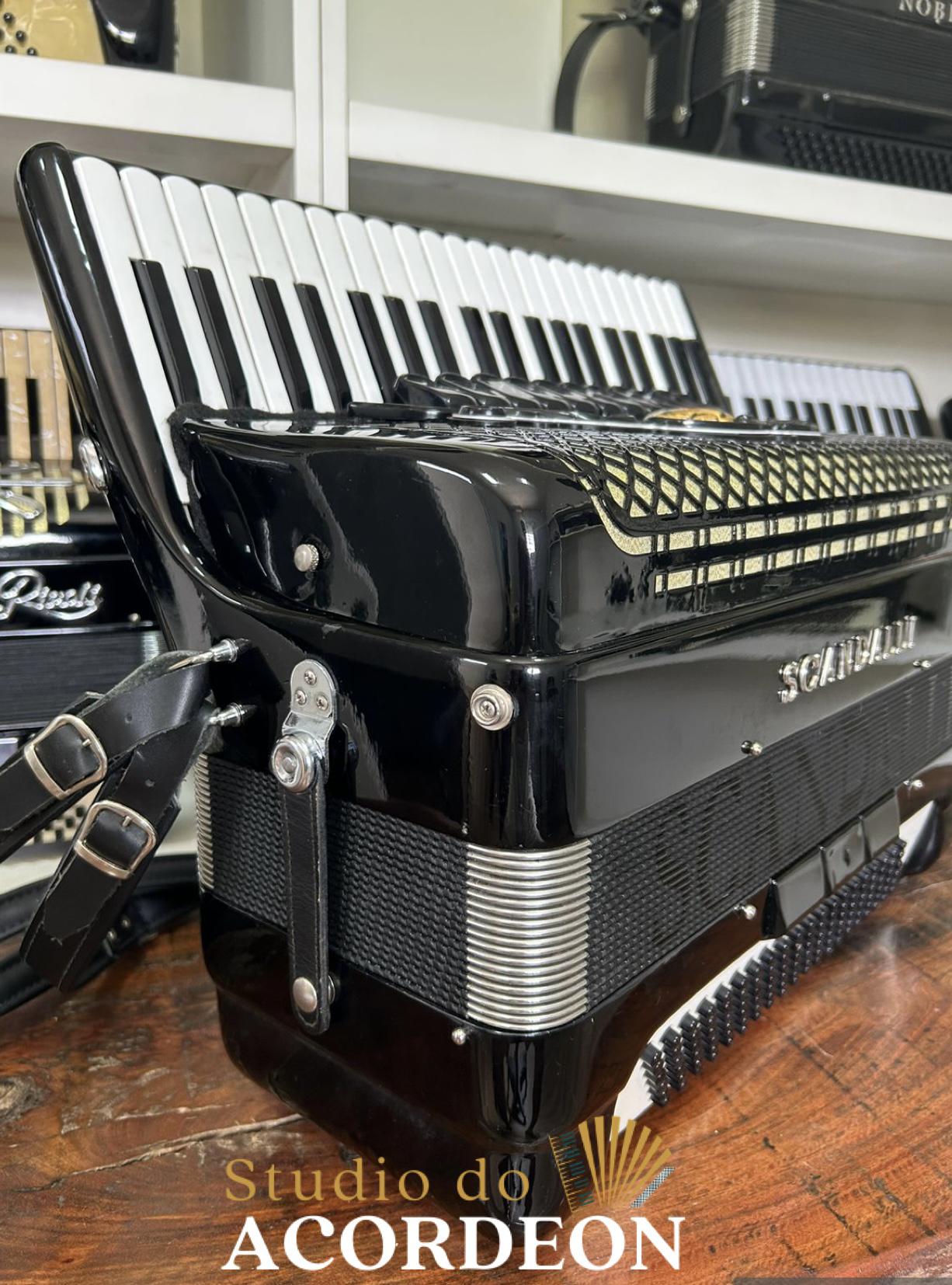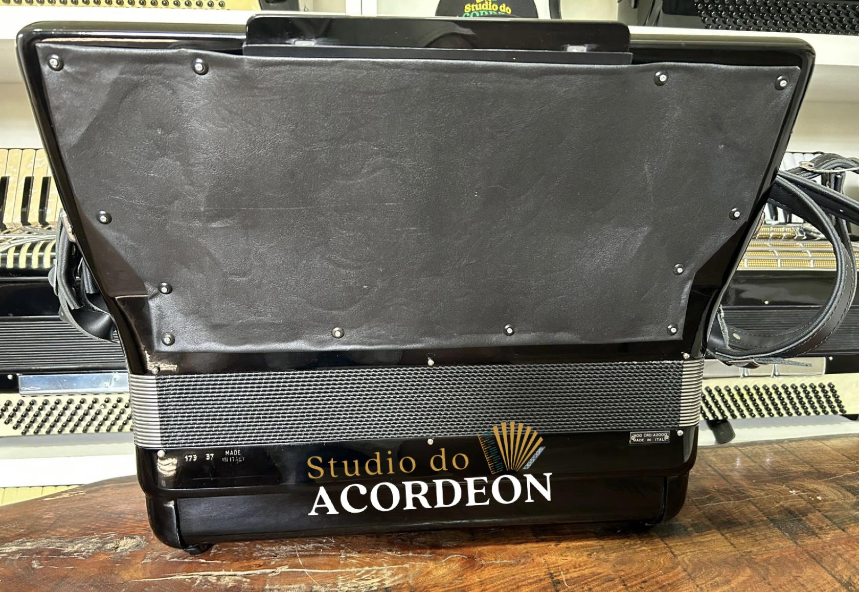 Máquina de 11/3 com 7/2 registros; Desarme Lateral; 3/4 de voz, com Violin original e Cassoto no Basson (Meia Ressonância); Teclado tamanho profissional com 49cm; 120 baixos; 11.300kg aproximado; Fole e afinação 💯%; Alças de ombro e bag novo; Estado de nova; Enviamos para todo Brasil; Parcelamento em até 12x com Acréscimo da operadora.