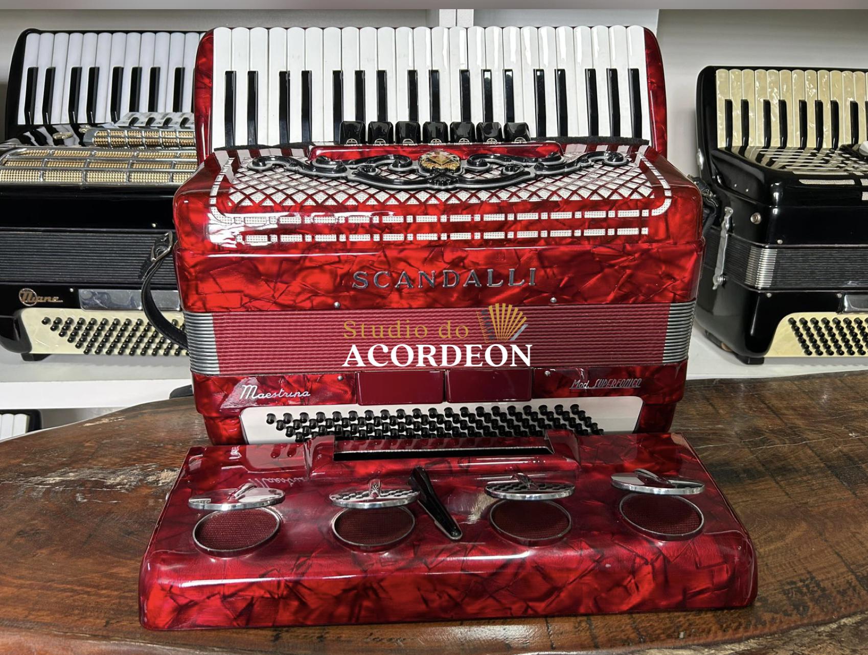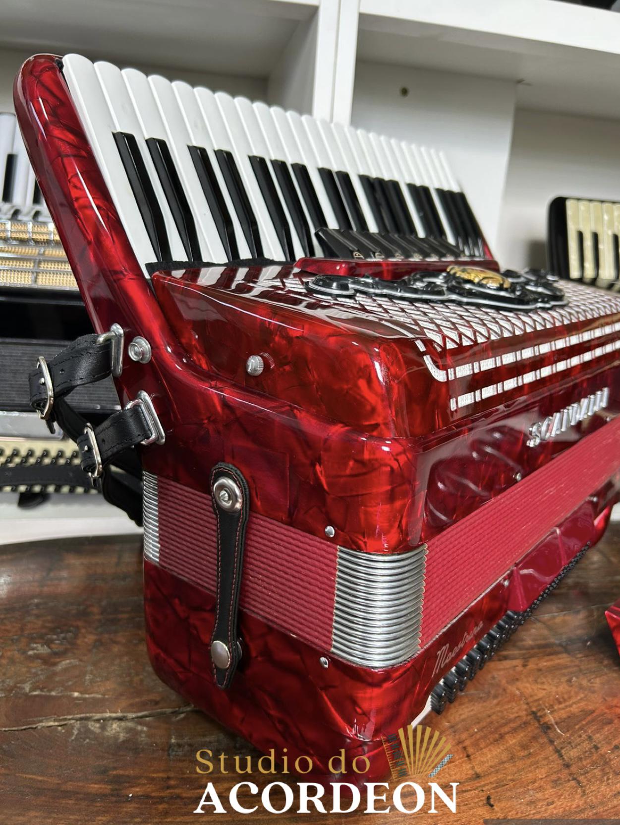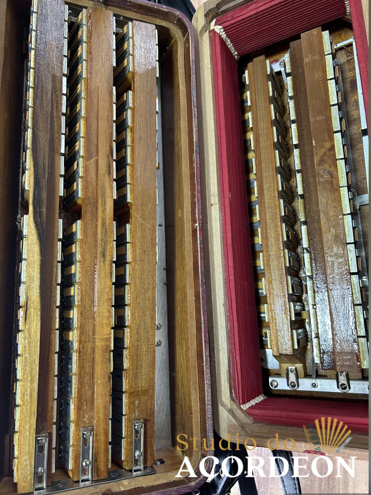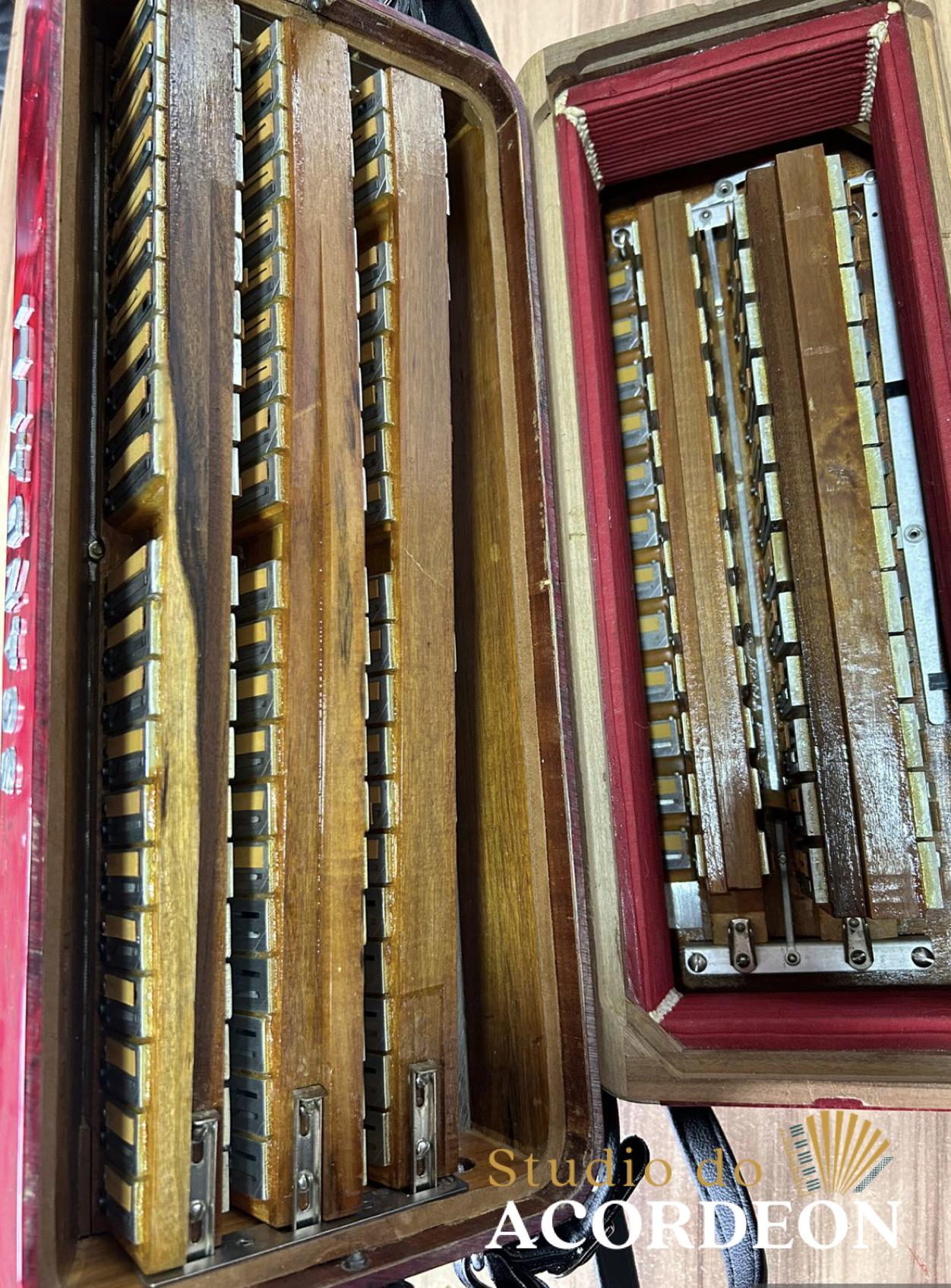 7/2 Registros; Desarme Lateral; 3/5 de voz com violino; Lacrada, sem furos de eletrificações; Teclado com 43cm; 120 baixos; Somente Venda; 9.600 kg aproximado; Fole e afinação 💯%; Case rígido e Correia de ombro novas; Enviamos para todo Brasil; Parcelamento em até 12x com Acréscimo da operadora;