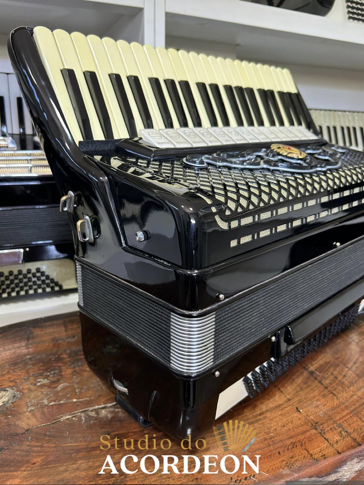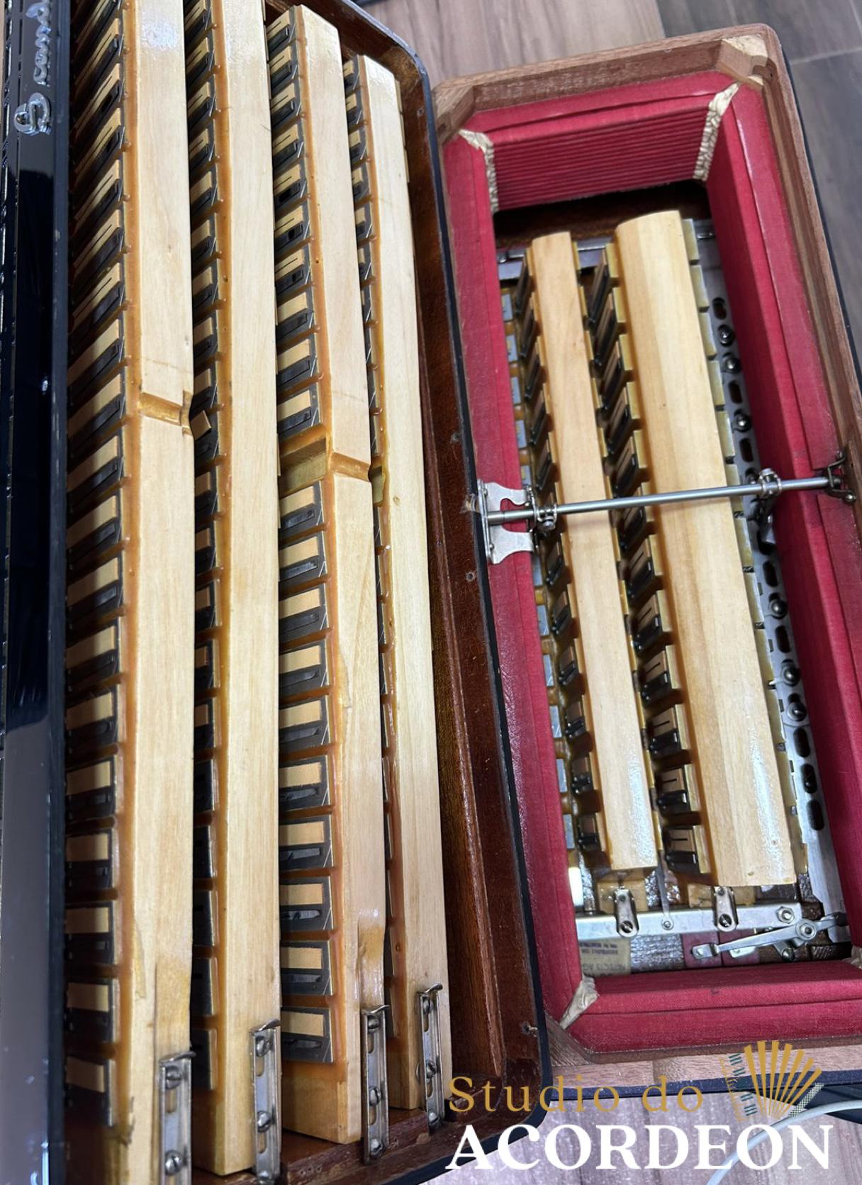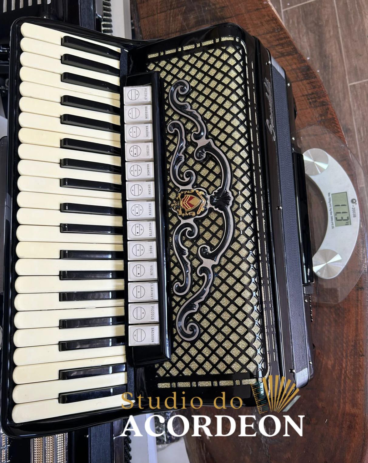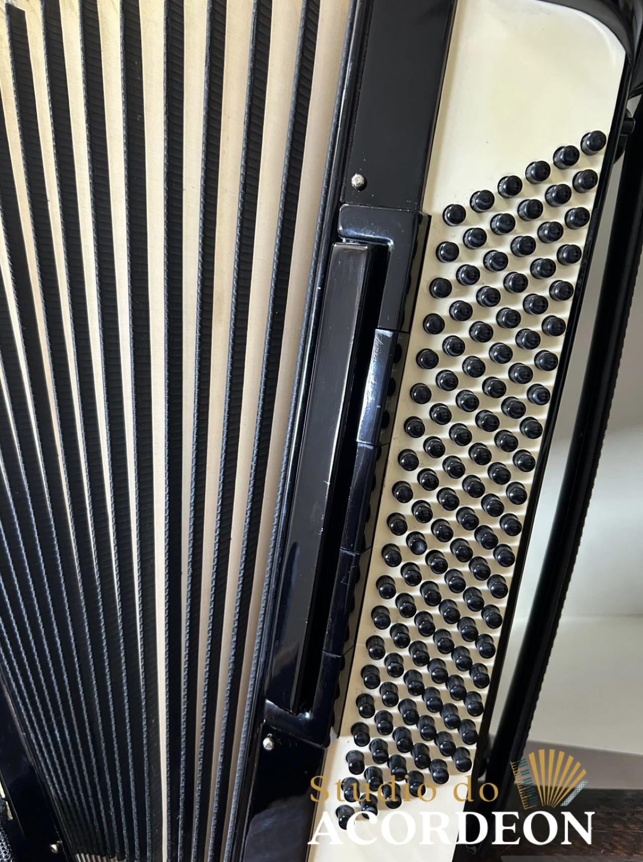 13/6 registros; 4/5 de voz Polifônica; Desarme Lateral; 120 Baixos; Fabricação Italiana; Lacrada, sem furos de eletrificações; Fole e afinação 💯%; Teclado marfim, tamanho profissional 48cm; 11.300 kg; Modelo clássico, utilizado por grandes artistas a mesma chama atenção por seu estado de conservação e originalidade; Timbre espetacular; Frete grátis para todo Brasil para pagamento à vista; Parcelamos em até 12X nos cartões 💳