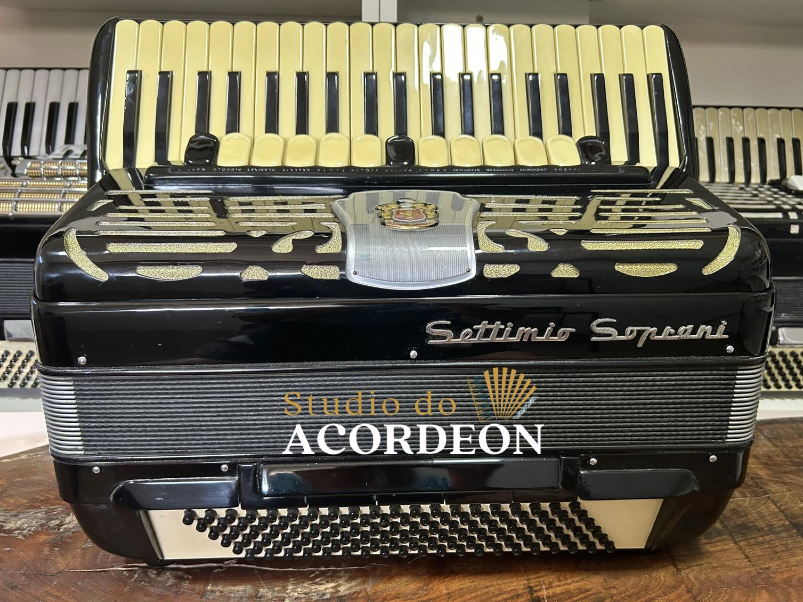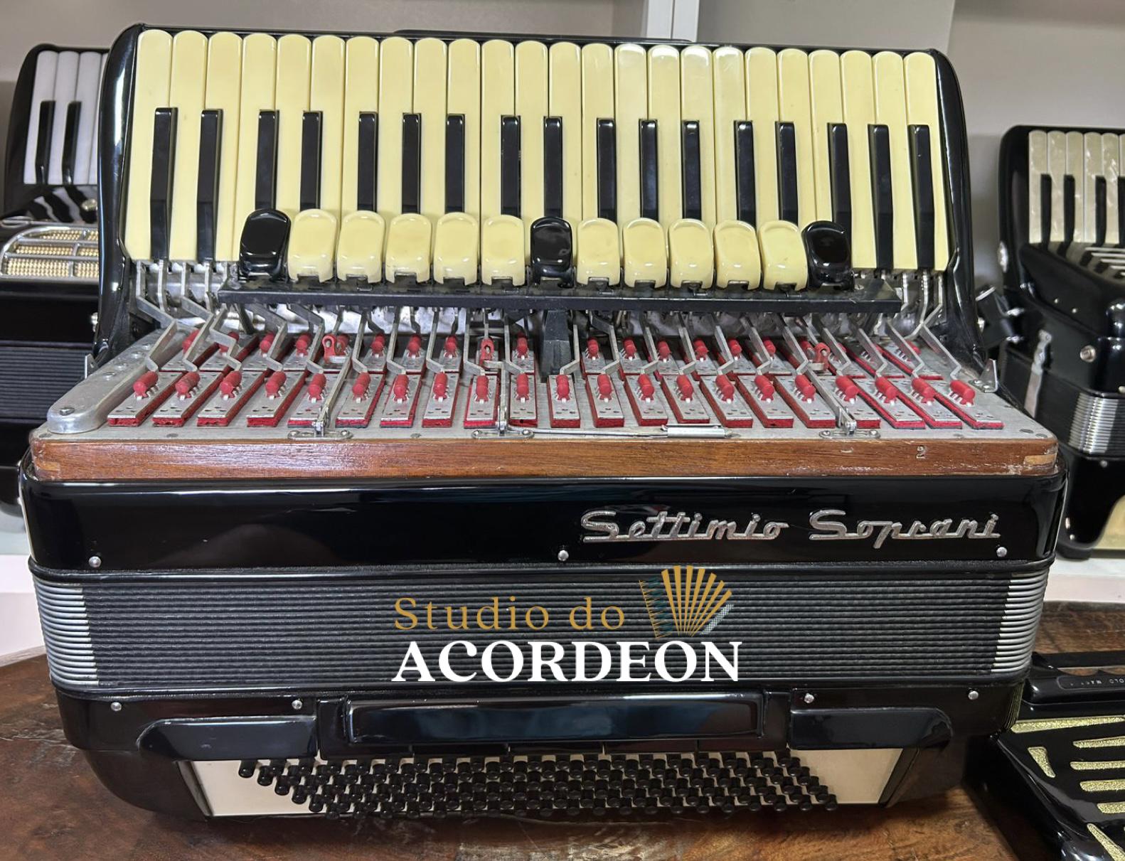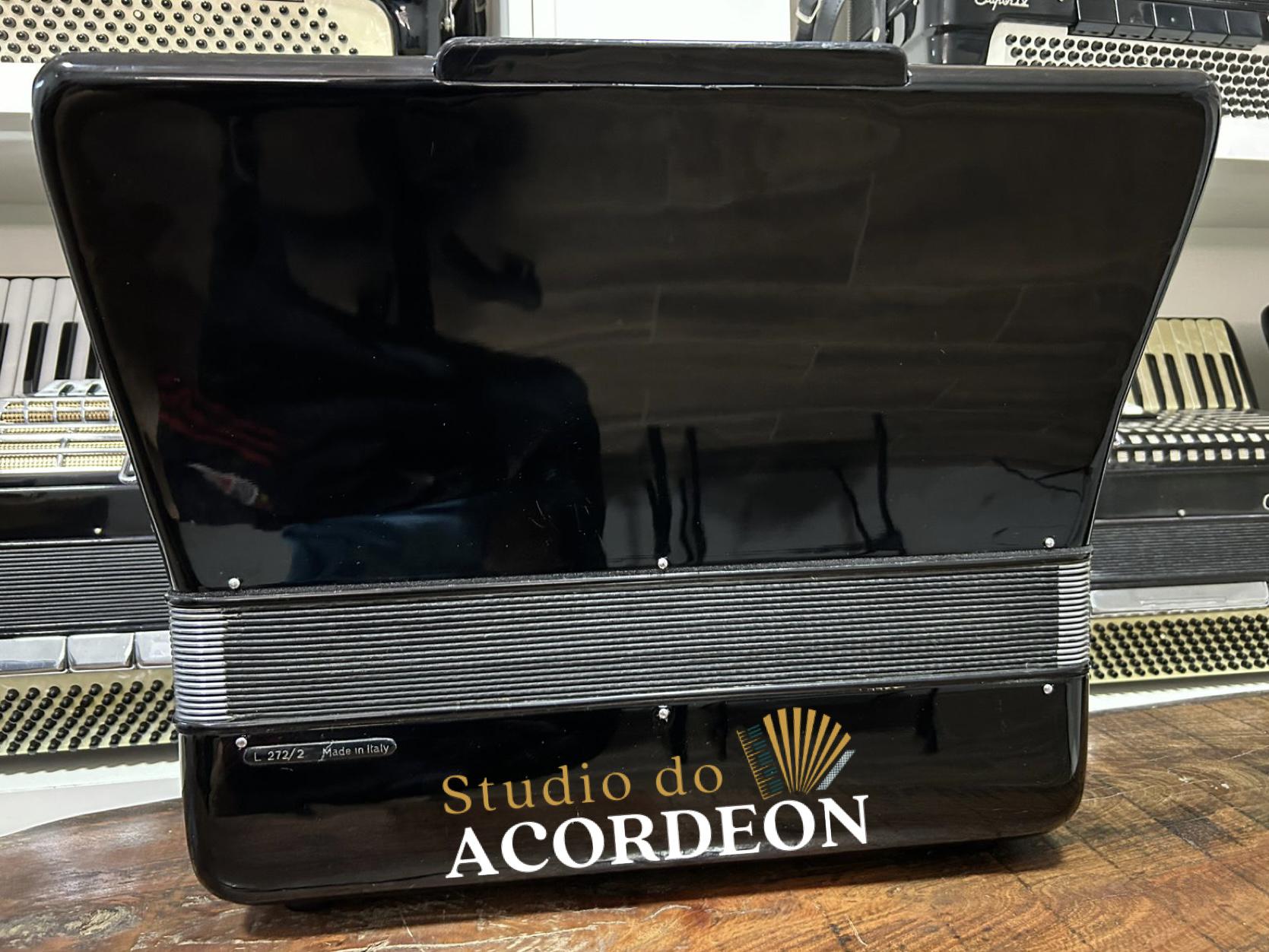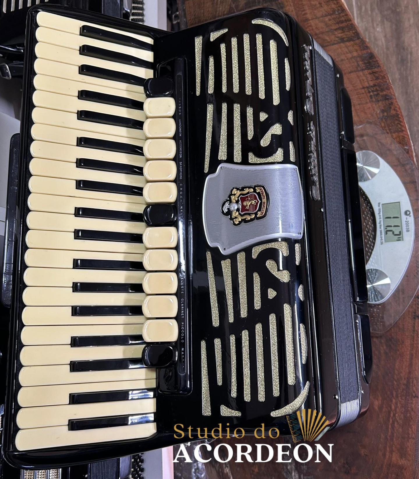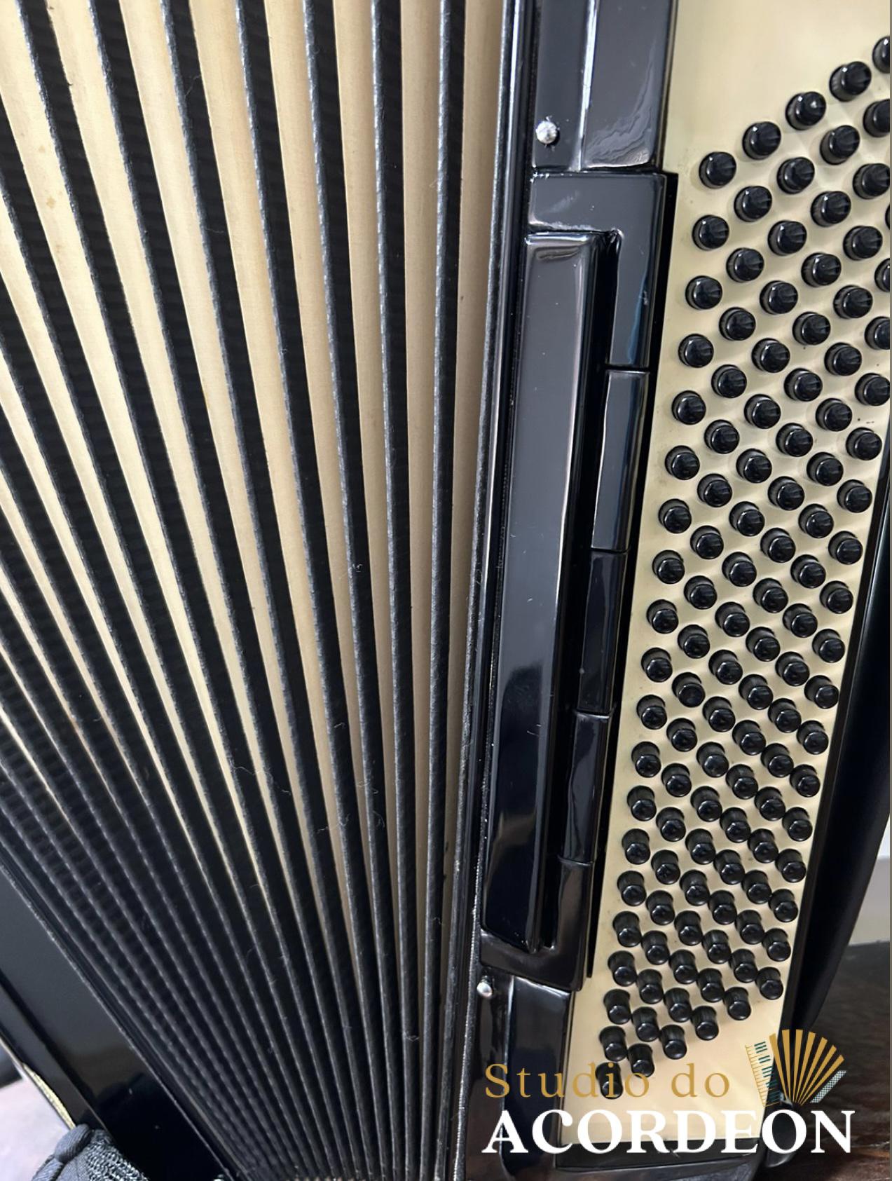 13/6 registros; 4/5 de voz Polifônica; 120 Baixos; Desarme Lateral; Fabricação Italiana; Lacrada, sem furos de eletrificações; Fole e afinação 💯%; Teclado com tamanho profissional 48cm; 11.200 kg; Chama atenção seu estado de conservação e originalidade; Timbre espetacular; Frete grátis para todo Brasil para pagamento à vista; Parcelamos em até 12X nos cartões 💳