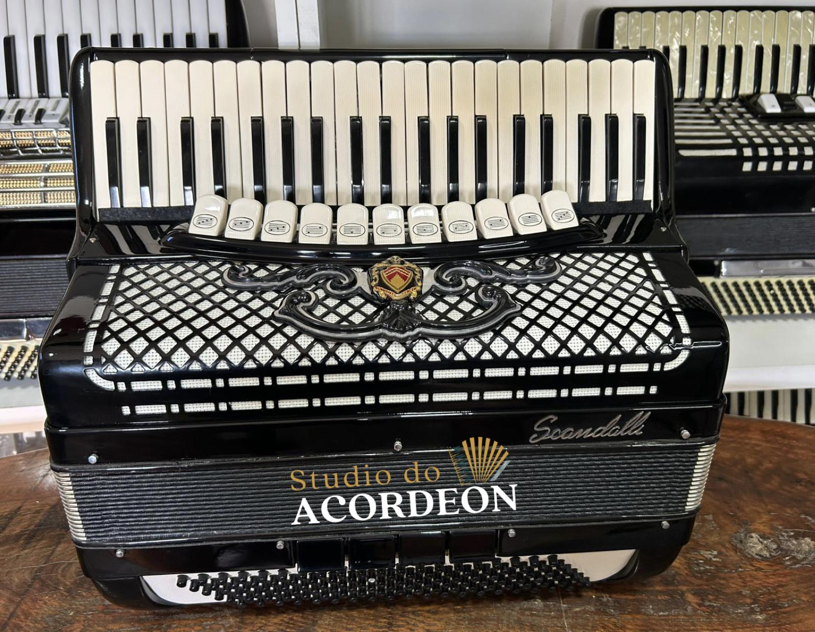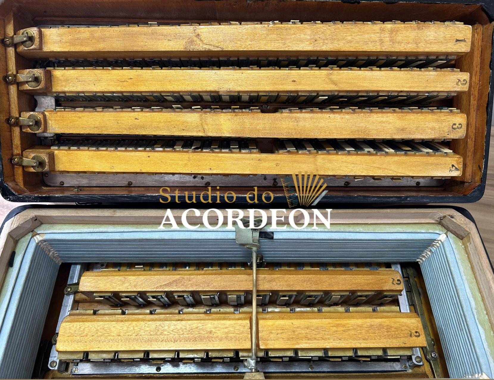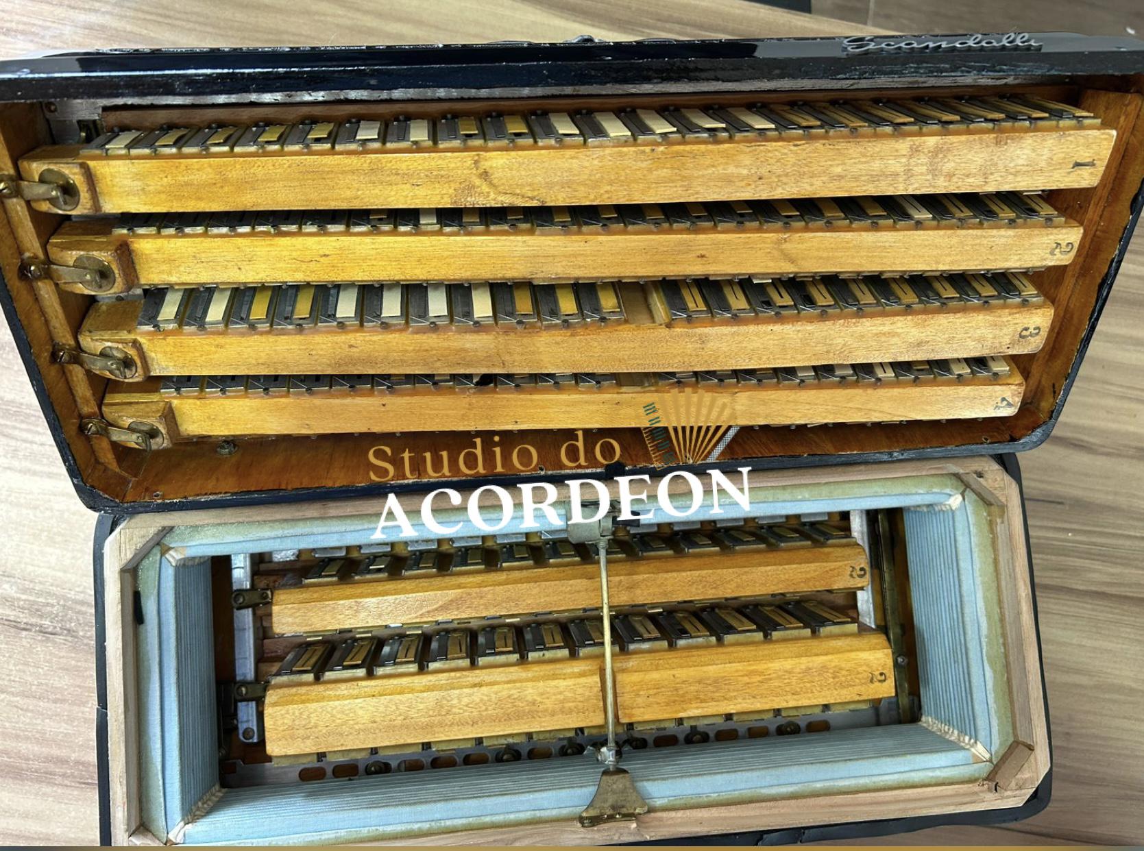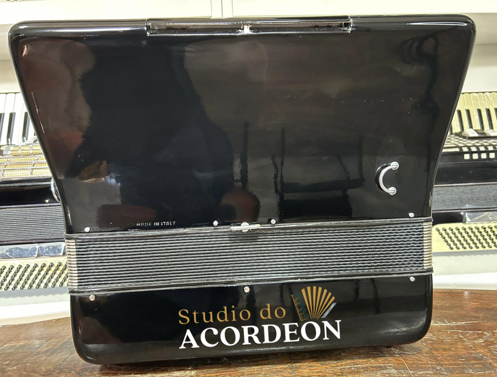 11/4 registros; 4/5 de voz polifônica; Oitavada de fábrica; Desarme Lateral; 120 baixos; Aceitamos Cartões de Crédito 💳 até 12X; Teclado reduzido com 43Cm; Apenas 10kg aproximadamente; Acompanha Alças de ombro novas e bag nylon; Enviamos para todo Brasil;