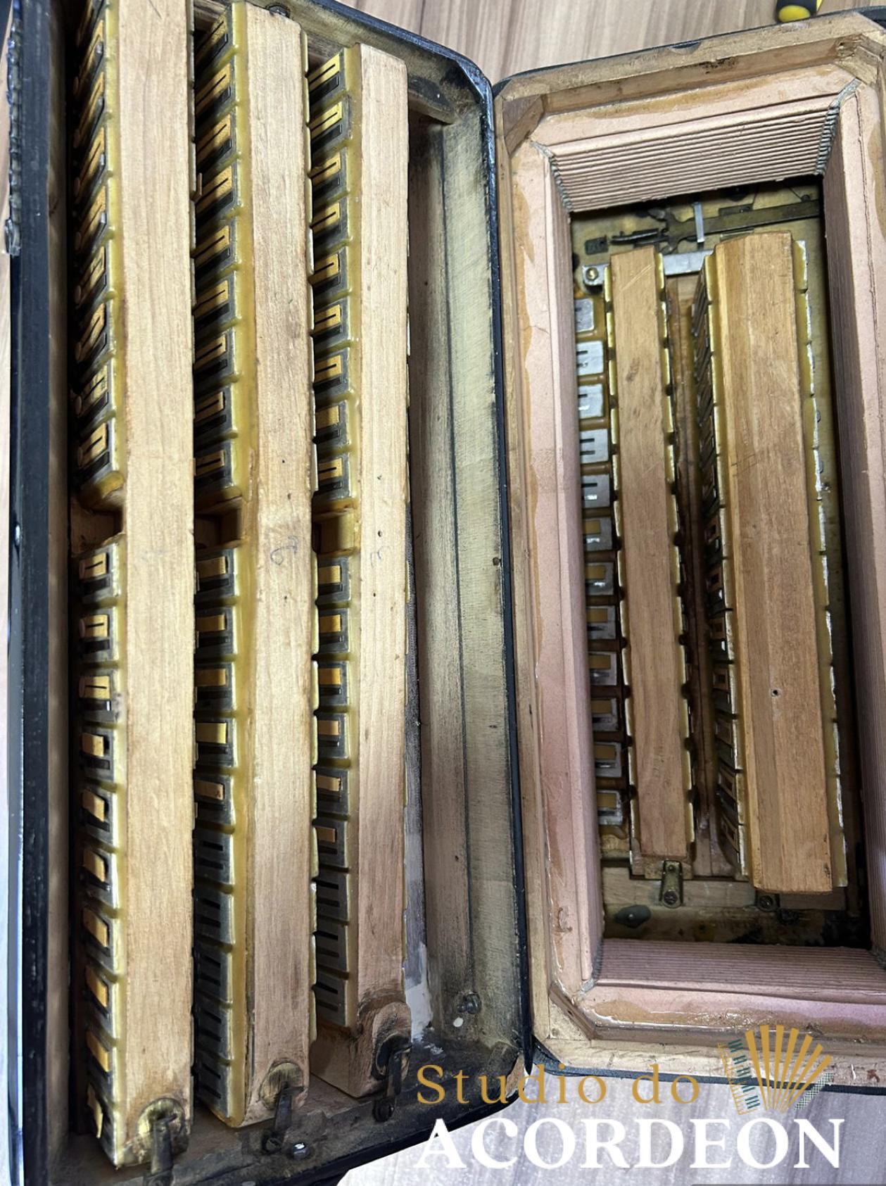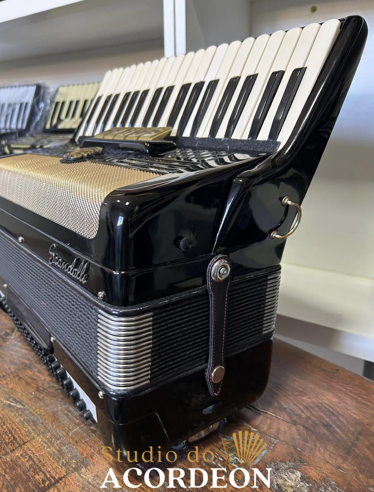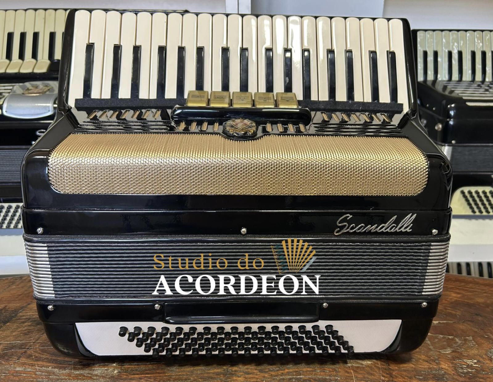 3/5 de voz com violino; 80 Baixos; Modelo anos 50, série ouro; Fole e afinação 💯%; Teclado marfim original; Frete grátis para todo Brasil para pagamento à vista; Parcelamos em até 12X nos cartões 💳