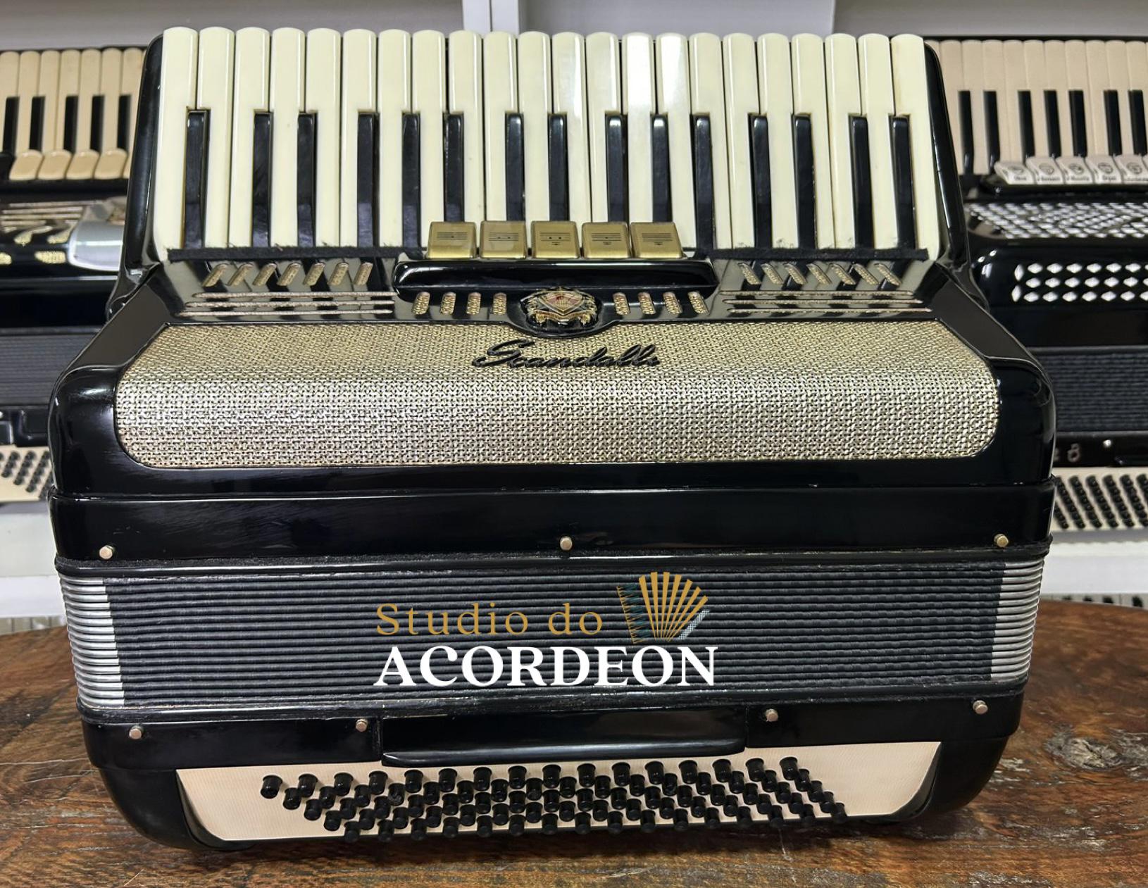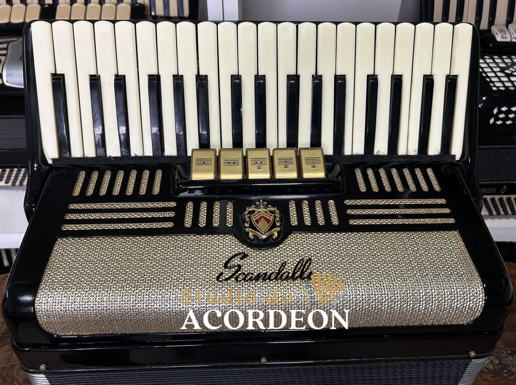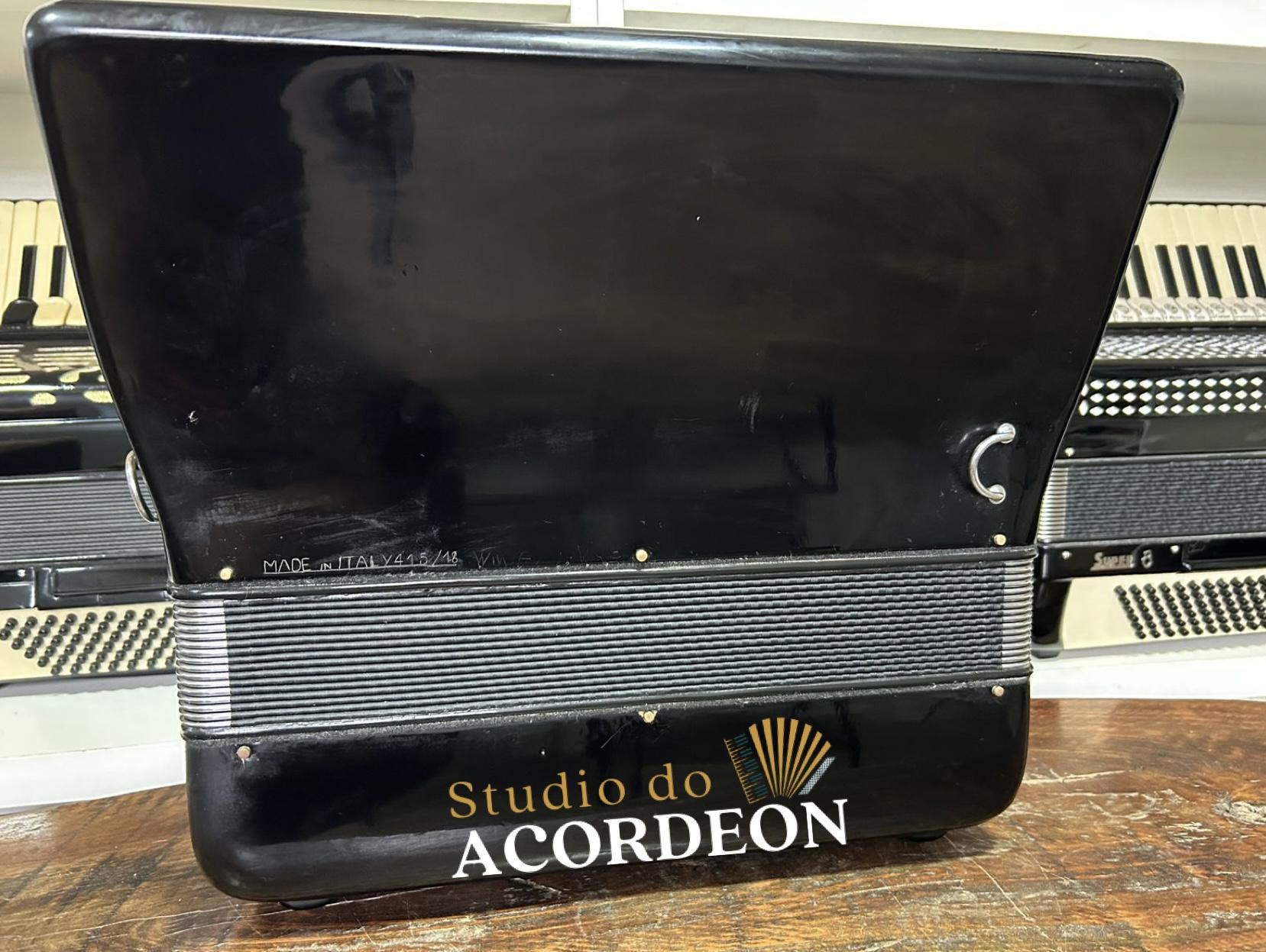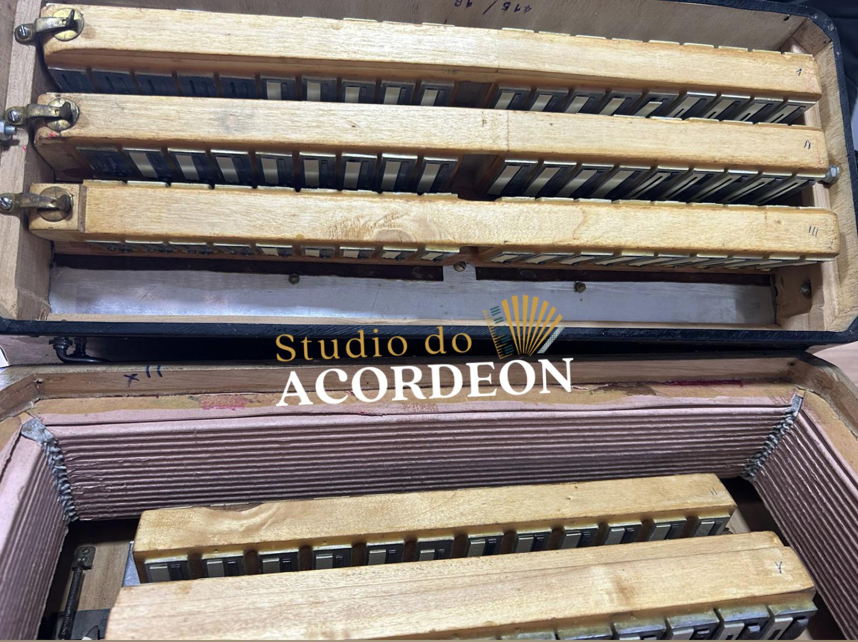 3/5 de voz com violino; 80 Baixos; 5/2 Registros; Modelo anos 50, série ouro; Fole e afinação 💯%; Teclado marfim; Frete grátis para todo Brasil para pagamento à vista; Parcelamos em até 12X nos cartões 💳