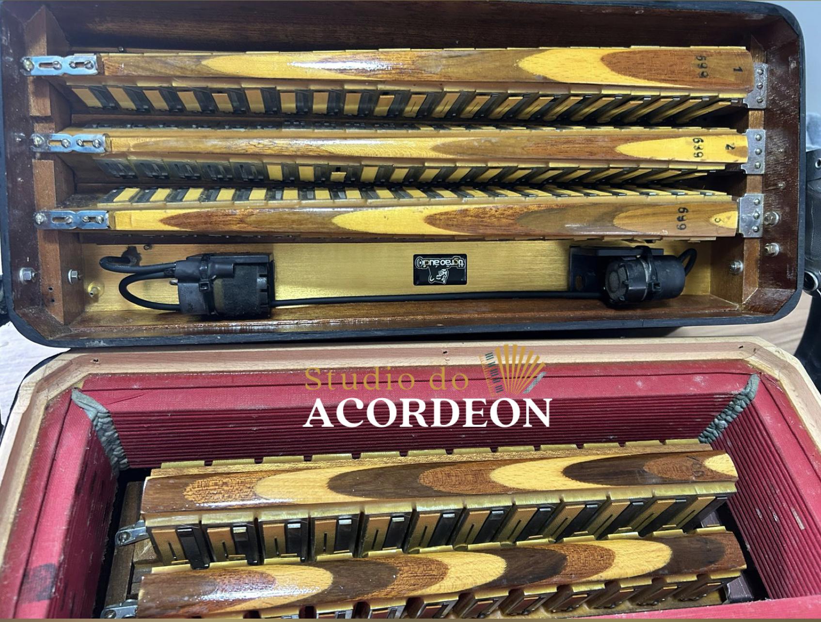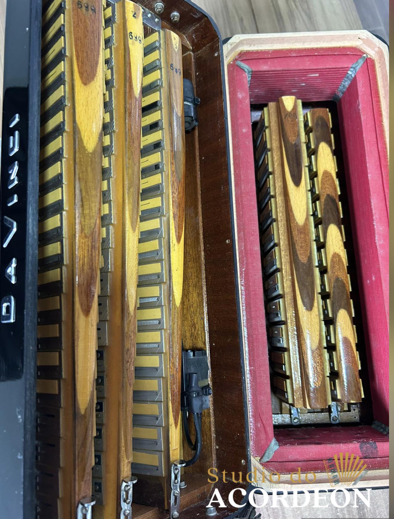7/3 registros; Terça de voz oitavada de fábrica; Eletrificada; Desarme Lateral; 120 Baixos; Simulador de Cassoto; Fole e afinação 💯%; Timbre espetacular; Frete grátis para todo Brasil para pagamento à vista; Parcelamos em até 12X nos cartões 💳