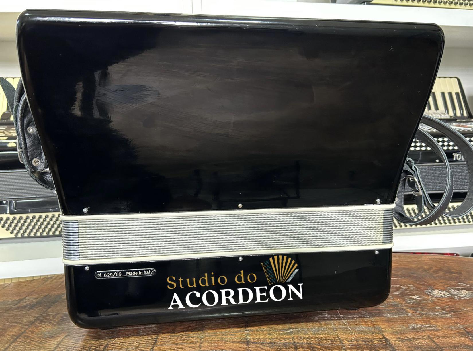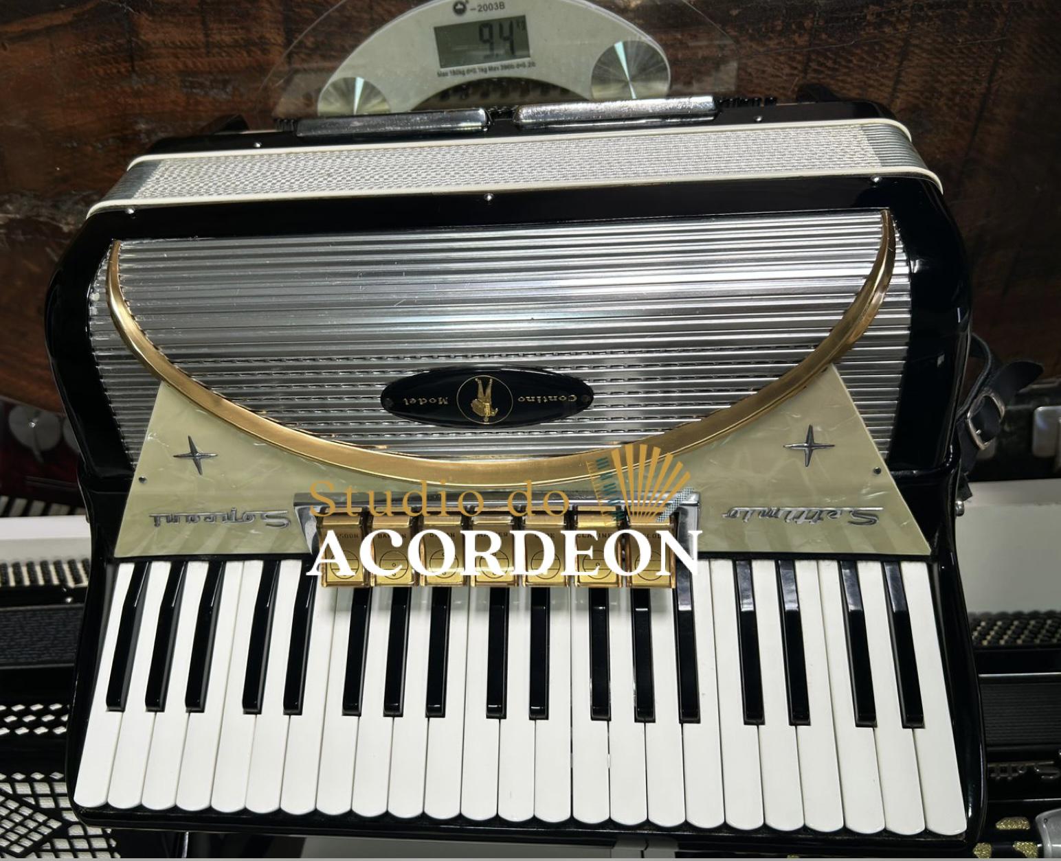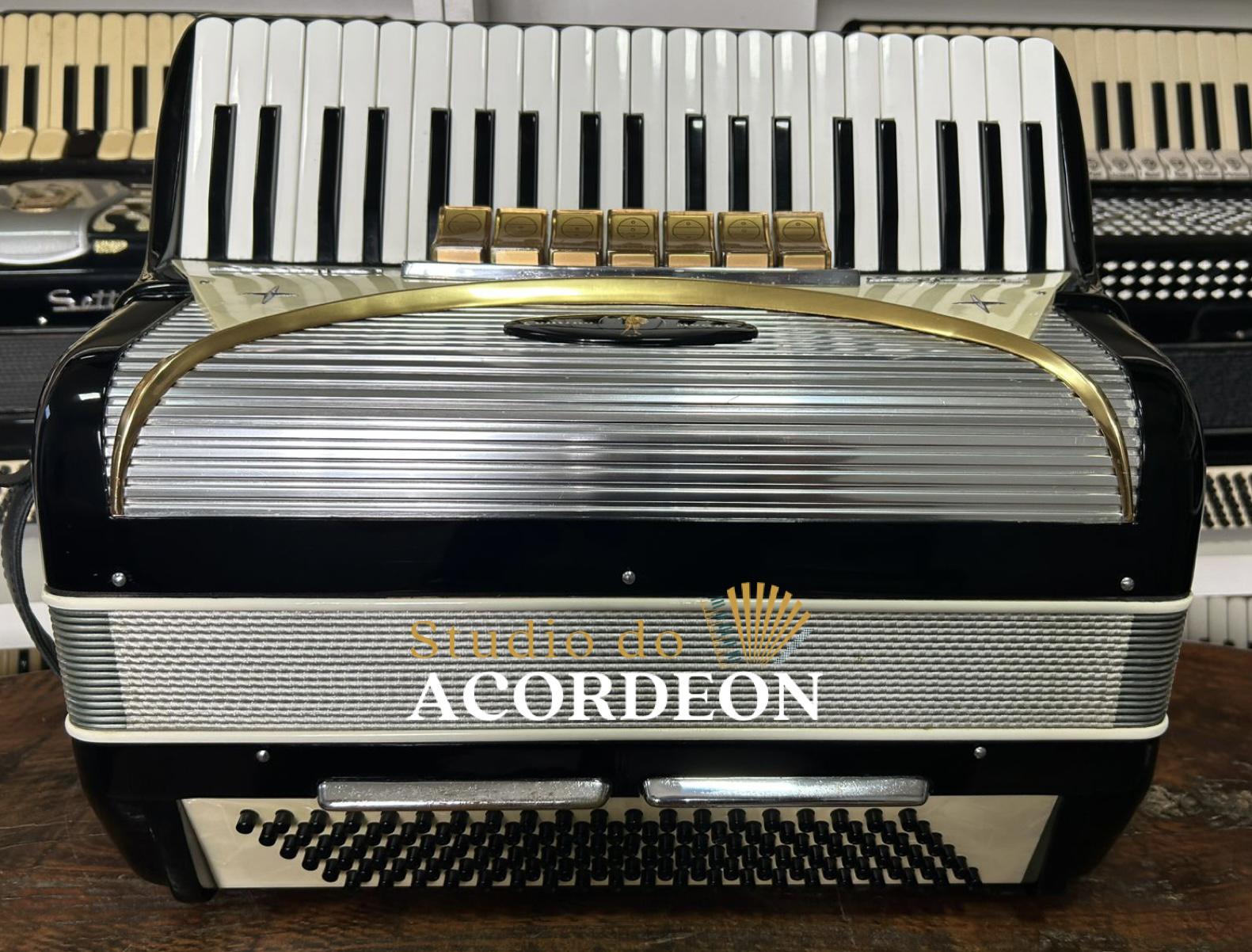 7/2 registros; 3/5 oitavada de fábrica; Lacrada, nunca furada com eletrificações; 120 Baixos; Fole e afinação 💯%; Timbre espetacular; Frete grátis para todo Brasil para pagamento à vista; Parcelamos em até 12X nos cartões 💳