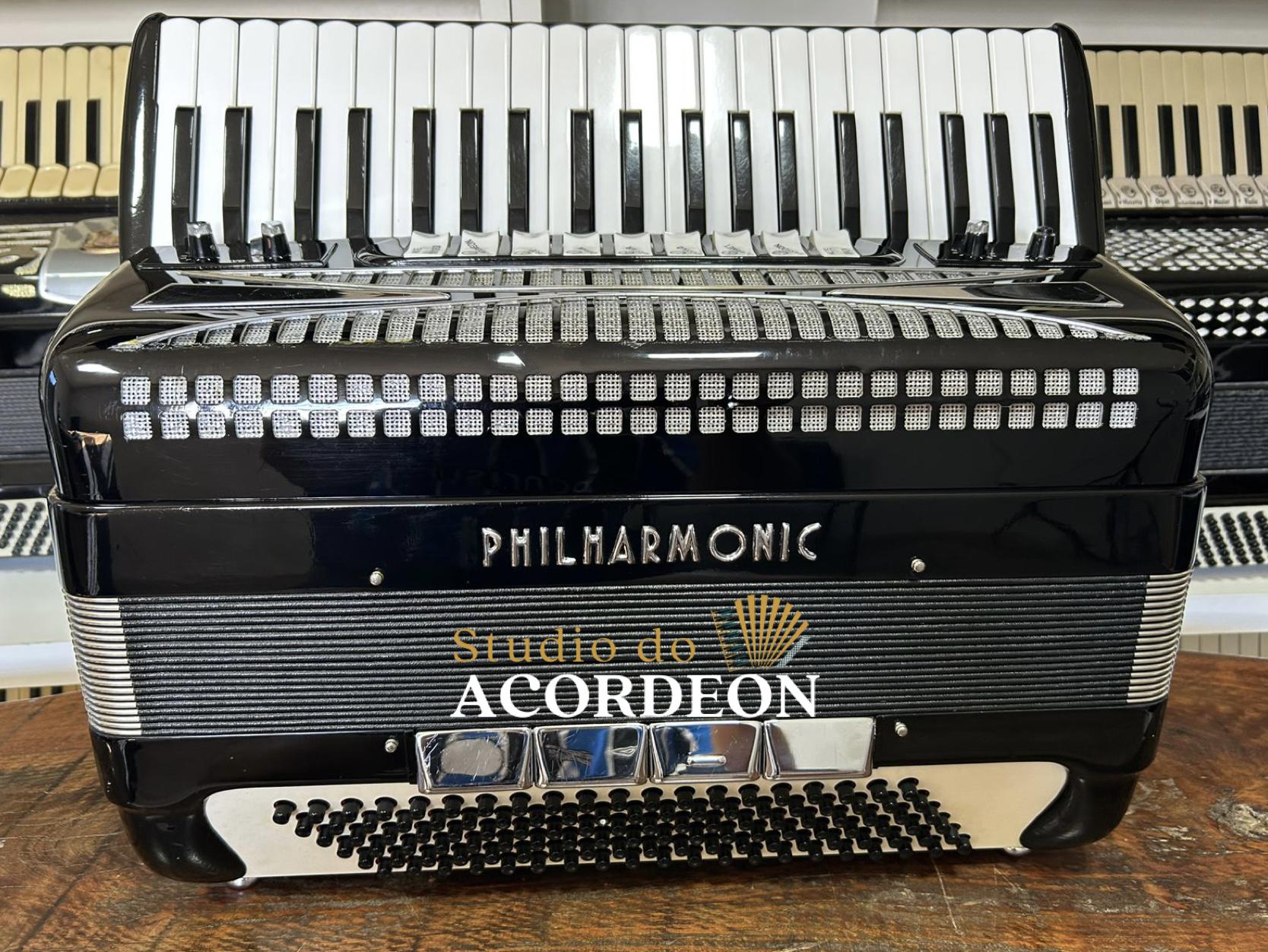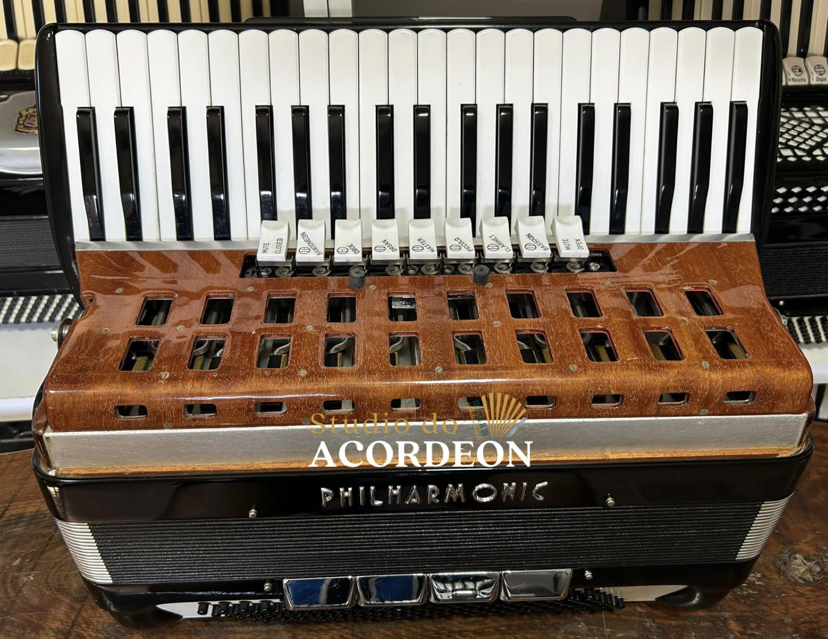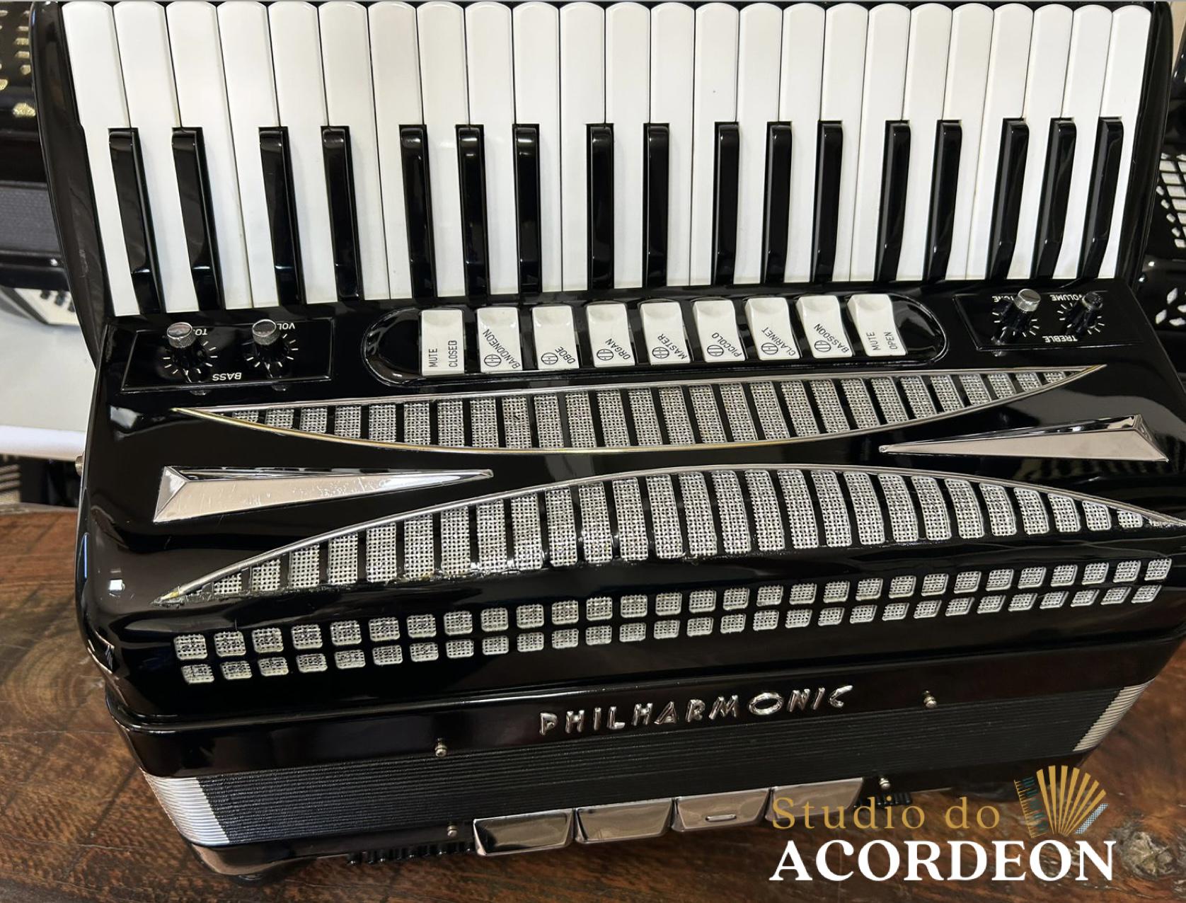 Teclado tamanho profissional com 49cm; 7/4 registros; 3/5 oitavada de fábrica; Desarme Lateral; Simulador de Cassoto; 120 Baixos; Fole e afinação 💯%; Timbre espetacular; Frete grátis para todo Brasil para pagamento à vista; Parcelamos em até 12X nos cartões 💳