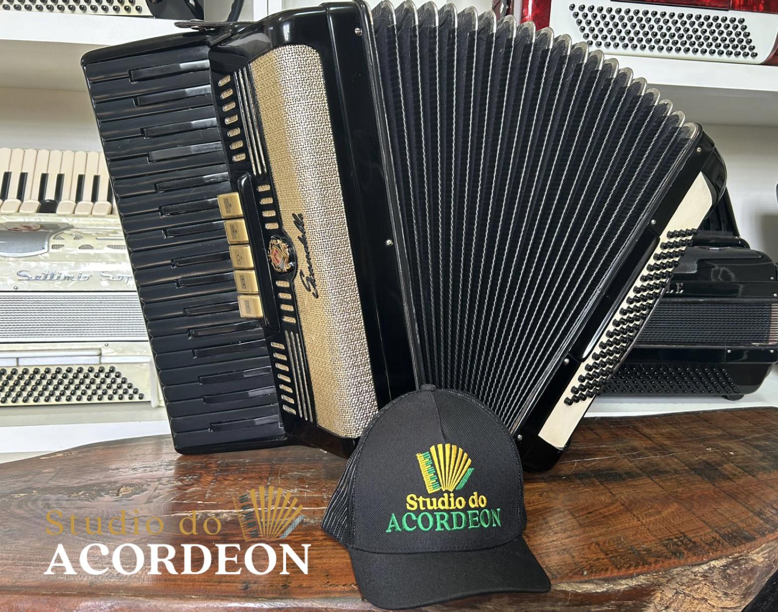 2 registros; Selo verde e Astes redondas; 3/5 de voz; Teclado original marfim; 80 baixos; Nunca furada com eletrificações; 7.400kg aproximado; Timbre forte espetacular; Toda em celuloide em estado de nova, com fole e afinação 💯%; Alças e bag novo; Enviamos para todo Brasil; Parcelamento em até 12x com Acréscimo da operadora;
