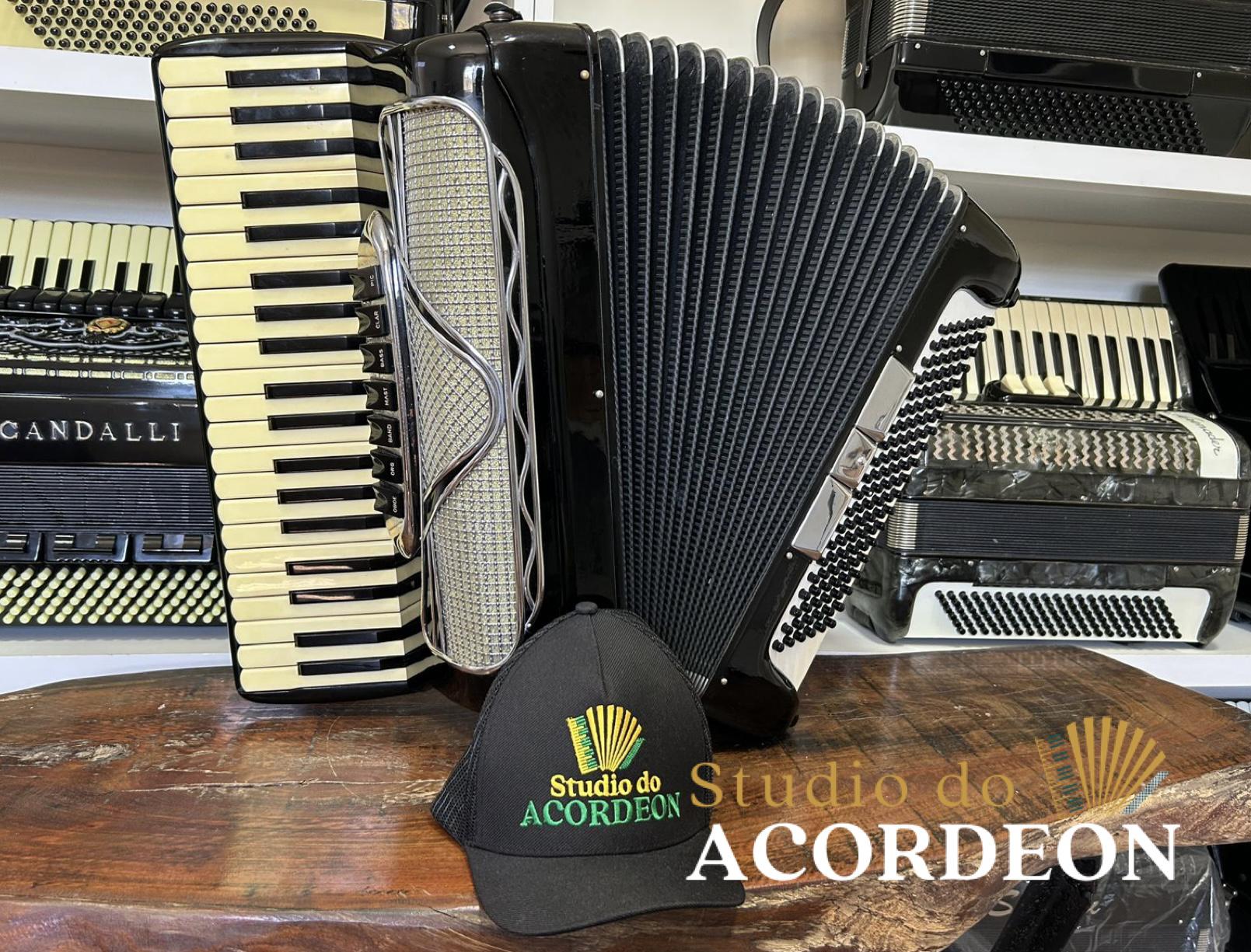 2 registros; Astes redondas; 3/5 de voz; Teclado original marfim; 80 baixos; 7.800kg aproximado; Timbre forte espetacular; Toda em celuloide em estado de nova, com fole e afinação 💯%; Alças e bag novo; Enviamos para todo Brasil; Parcelamento em até 12x com Acréscimo da operadora;